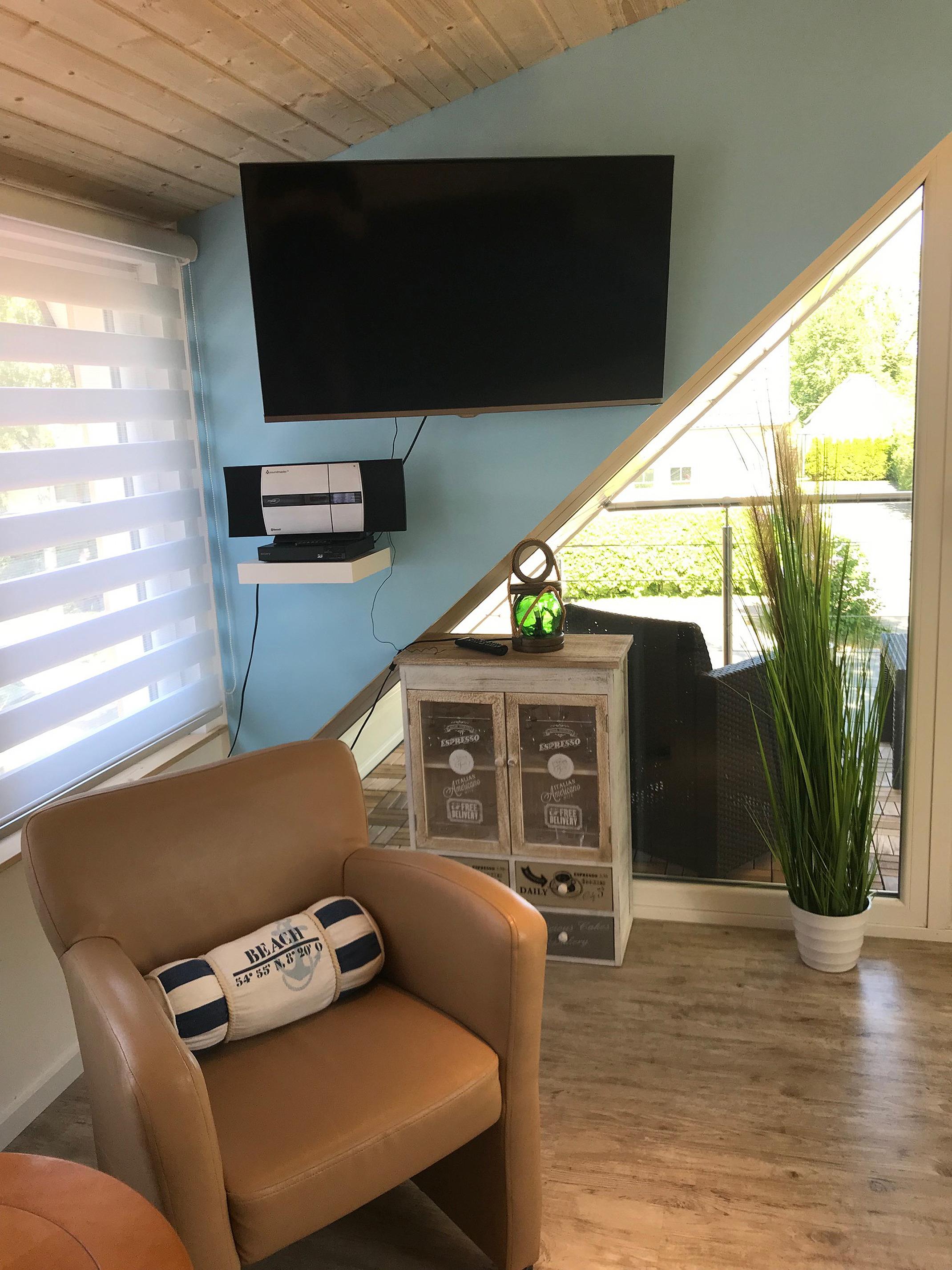 Ein maritim gestaltetes Feriennest im hellen Dachgeschoß mit separatem Eingang, kleiner ebenerdiger Terrasse und einem Balkon im 1. Obergeschoß, von dem aus Sie den Zingster Überblick, wie ein Kapitän auf seiner Brück, haben. Es ist auf etwas über 35 qm alles vorhanden, was zwei Personen im Urlaub benötigen. Ein Traum für Naturliebhaber und Strandnixen, die ein komfortables und liebevoll eingerichtetes Dach über dem Kopf suchen, aber keinen Tanzsaal benötigen.