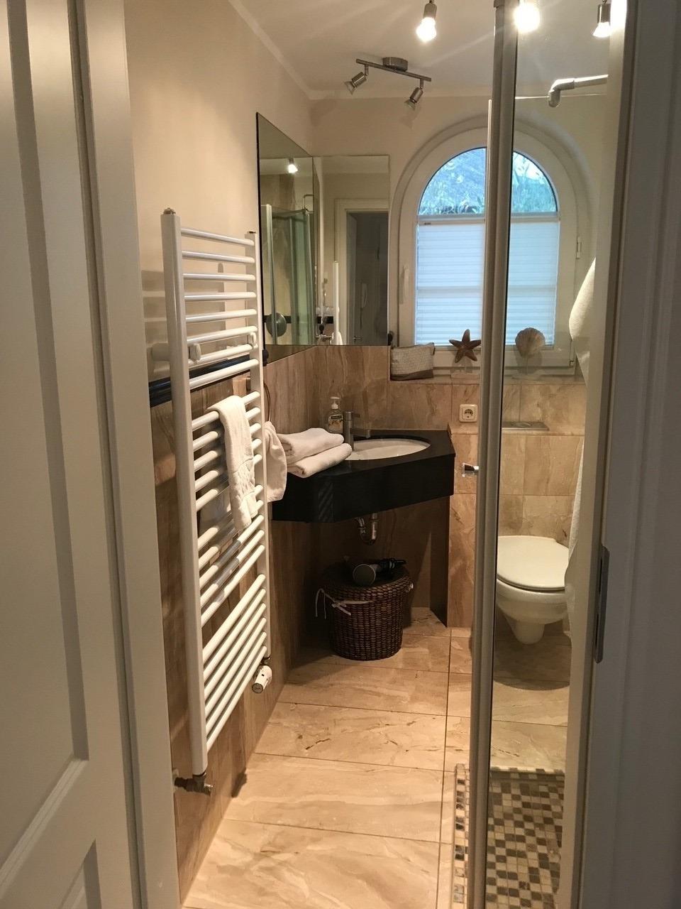 Exklusive Wohnung mit 70qm, 3 Zimmer für 1-4 Personen mit Bad inklusive Dusche und WC sowie einem zusätzlichen Gäste WC, Terrasse und Garten. Diese Wohnung liegt in einer exklusiven Wohnanlage direkt am Deich. Wohnen unter Reet mit direkter Nähe zum Meer. Die komplette Ausstattung dieser Wohnung läßt keine Wünsche offen. Radio, DVD-Player, Großbild-Fernseher, Dolby-Surround-Analage, Fussbodenheizung, offener Kamin, komplette Küchenzeile mit Kaffemaschine, Mikrowelle, Geschirrspüler und Kühlschrank. Die Waschmaschine und der Trockner können gegen Gebühr genutzt werden. Kostenlose Nutzung der Gemeinschaftssauna. Genießen Sie Ihren Urlaub auf der Terasse, oder einen romantischen Abend vor dem offenen Kamin im Wohnzimmer. Auch und besonders im Winter ist Zingst immer eine Reise wert.In dieser Wohnung sind keine Haustiere erlaubt.