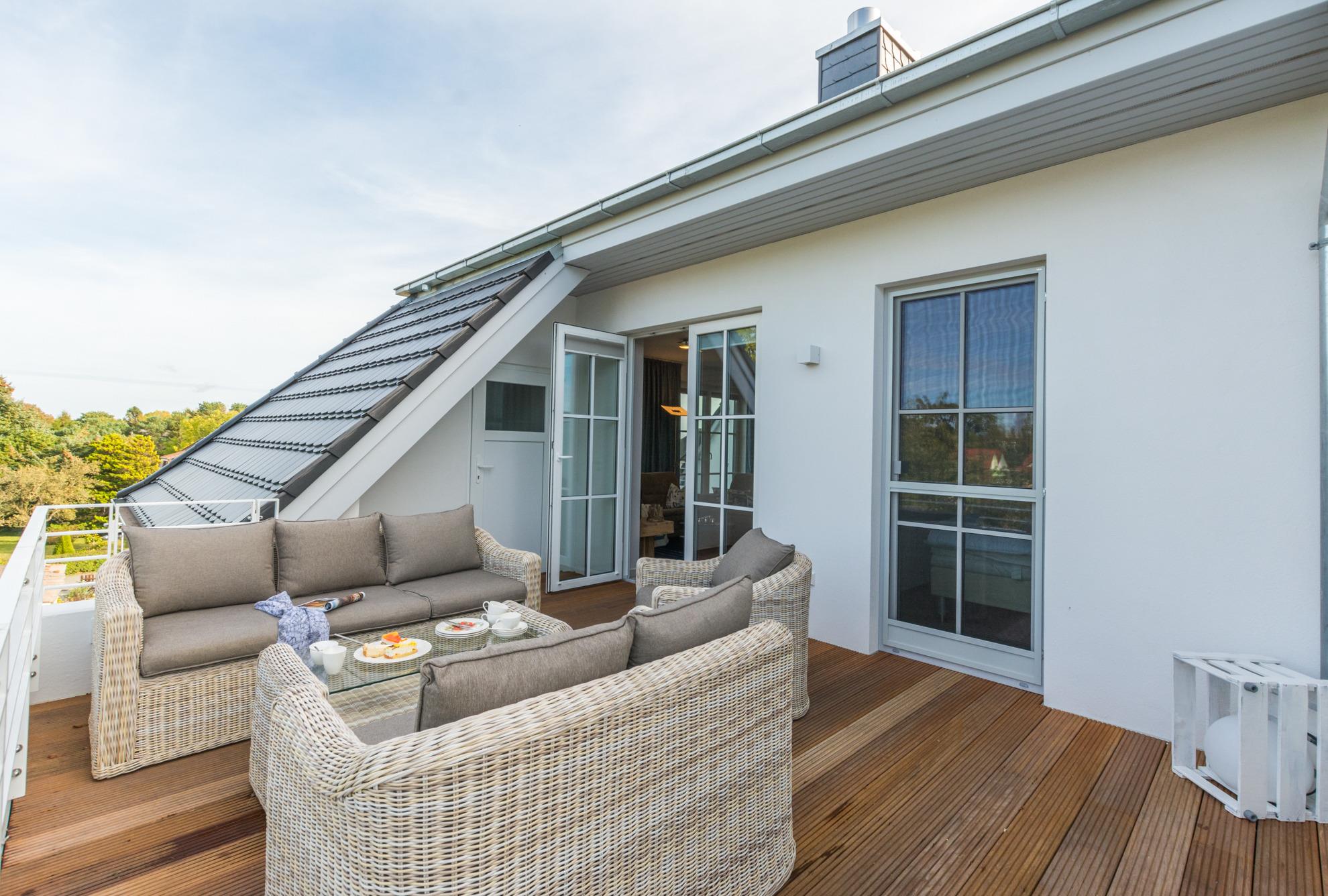 Moderne Penthousewohnung in Zingst mit Sauna, Dachterrassen und WLAN, nur 350 m vom Strand entfernt.