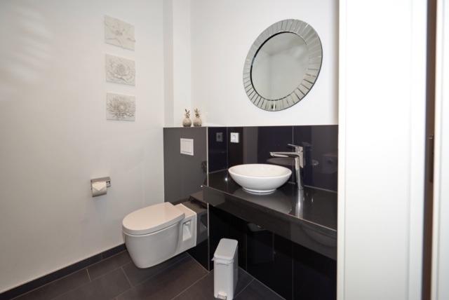Die Ferienwohnung hat zwei separat und individuell eingerichtete Schlafzimmer, jeweils ausgestattet mit einem Boxspringbett und einem eigenen TV. Sowohl vom Wohnbereich als auch durch die Schlafzimmer haben Sie Zugang zum dazugehörigen Garten und der Terrasse. Neben dem modern gestaltetem Badezimmer mit ebenerdiger Dusche, verfügt die Wohnung außerdem über ein Gäste WC.