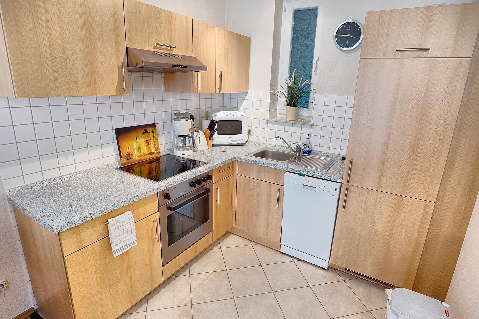 Eine ruhig gelegene und hochwertig ausgestattete Ferienwohnung. Das Haus wurde 2004 erbaut, die Wohnung 2016 renoviert und modernisiert. Zur Verfügung sind ein separater Fahrradabstellraum, ein eigener Pkw-Stellplatz im Schatten und die Mitnutzung der hauseigenen Sauna gegen Gebühr. Bequeme Möbel, wohnungseigenes WLAN und ein großes Smart-TV stehen für Information und Entertainment bereit. Für den mitgebrachten PC sind ein 27-Zoll-Monitor(HD) und Eingabegeräte vorhanden.