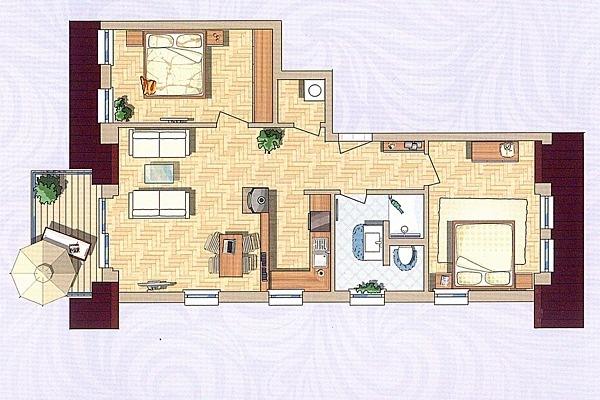 Das Appartement bietet auf 68 qm Platz für bis zu 4 Personen und hat eine komfortable Ausstattung, die keine Wünsche offen lässt. Die beiden Schlafzimmer verfügen über je ein Doppelbett und zwei Einzelbetten. Die zum Wohnraum offene helle Küche ist komplett ausgestattet. Der helle Wohnraum mit Essplatz und gemütlicher Sitzecke verfügt auch über einen Gaskamin. Von hier erreichen sie den nach Süden ausgerichteten möblierten Balkon. Im zusätzlichen Abstellraum finden sie die Waschmaschine sowie das Bügeleisen und die Reinigungsutensilien. Ebenfalls gehört zur Wohnung ein Tiefgaragenstellplatz und abschließbarer Fahrradabstellraum.
