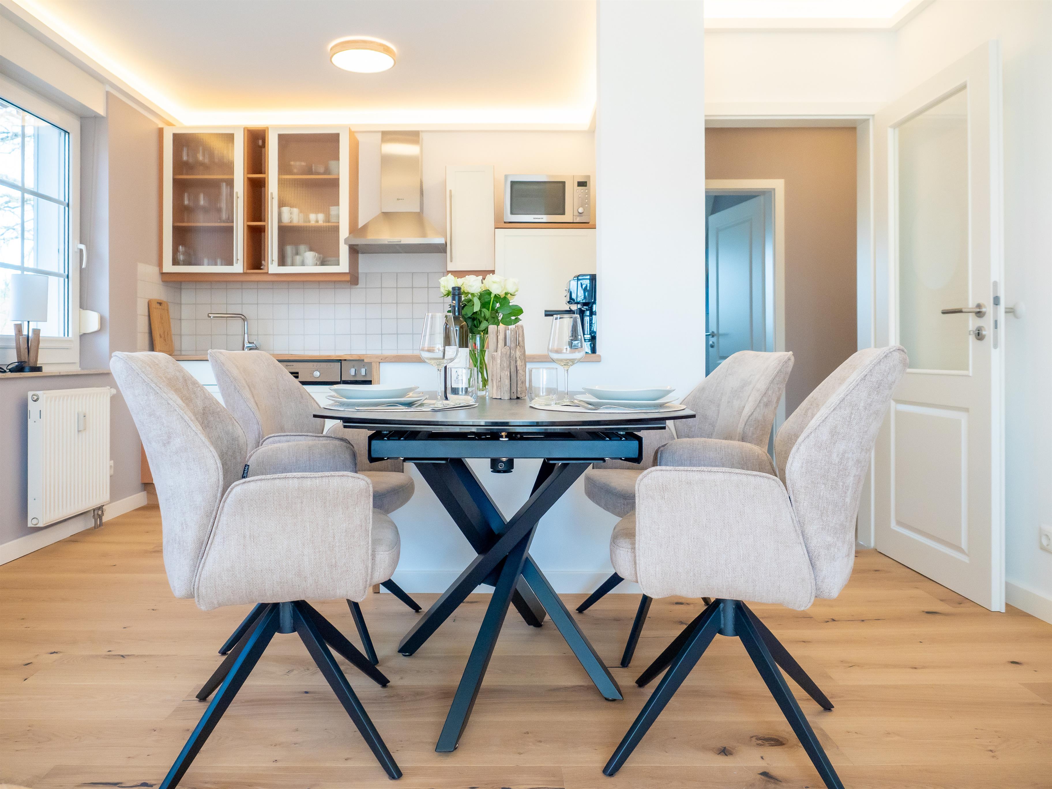 Urlaub in Ostseeheilbad Zingst? Dann buchen Sie jetzt diese gemütliche, komplett neu renovierte stilvolle Ferienwohnung. Genießen Sie Ihren Urlaub auf 66 m² mit ausreichend Platz für bis zu 4 Personen.