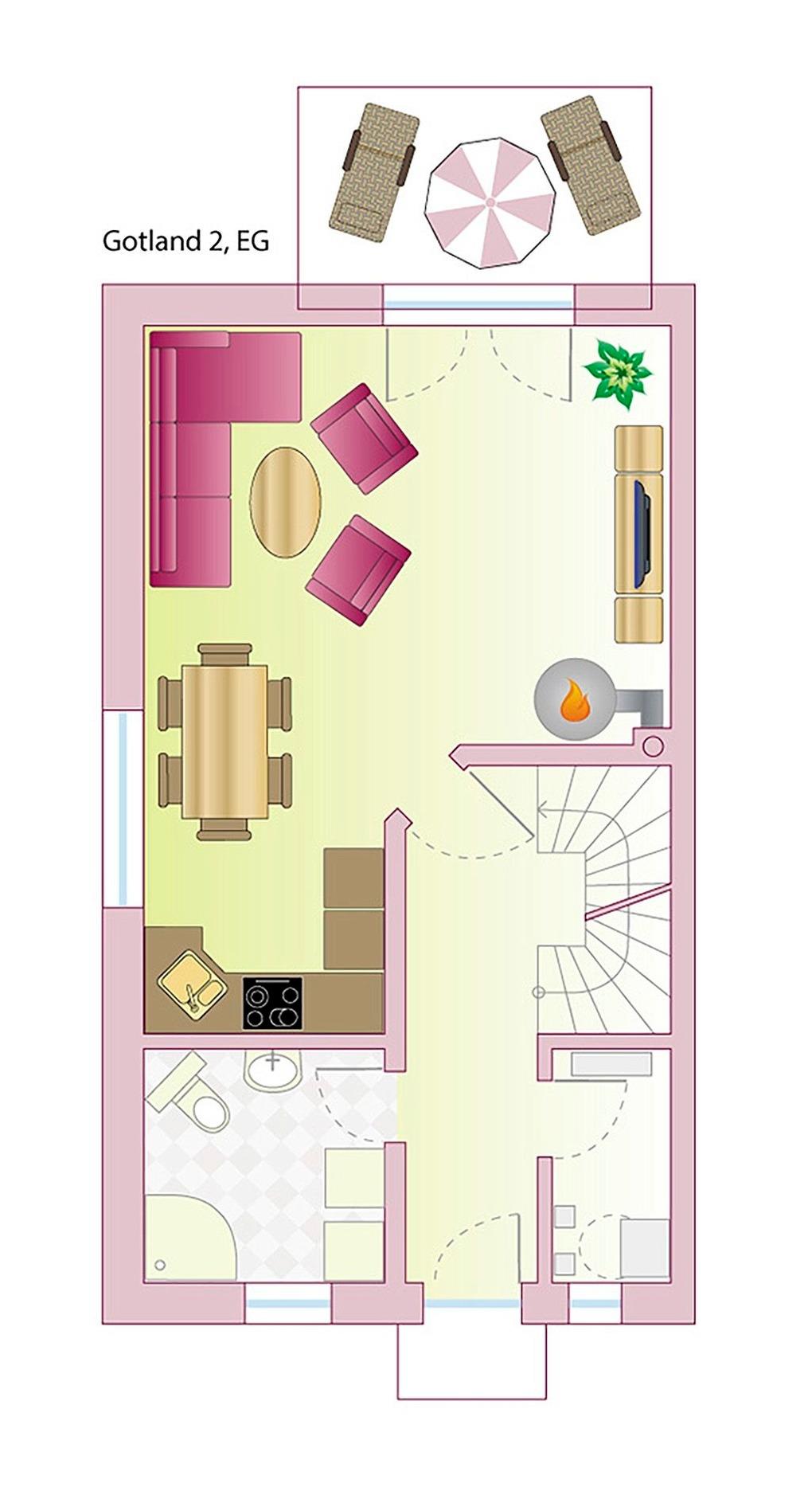 Die modern-komfortabel eingerichtete Haushälfte "Gotland 2" liegt ruhig, nur einen "Katzensprung" vom wunderschönen weißen Ostseestrand entfernt. Auch die Ortsmitte erreichen Sie in nur wenigen Gehminuten. Gerade im Frühjahr und im Herbst sind der Strandkorb auf der sonnigen Terrasse und der geräumige Balkon ein Highlight.