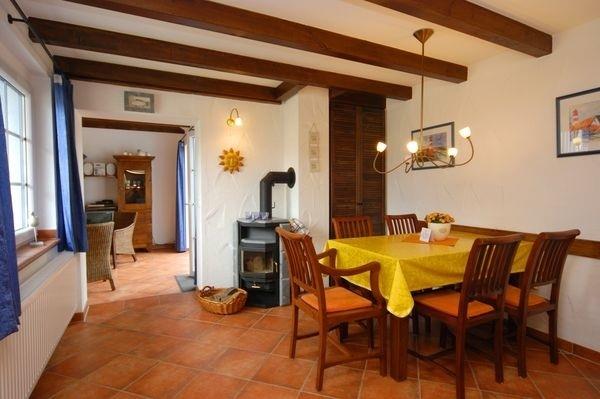 Für gemütliche Abende ist das Ferienhaus mit einem Fernseher und Kamin ausgestattet.
