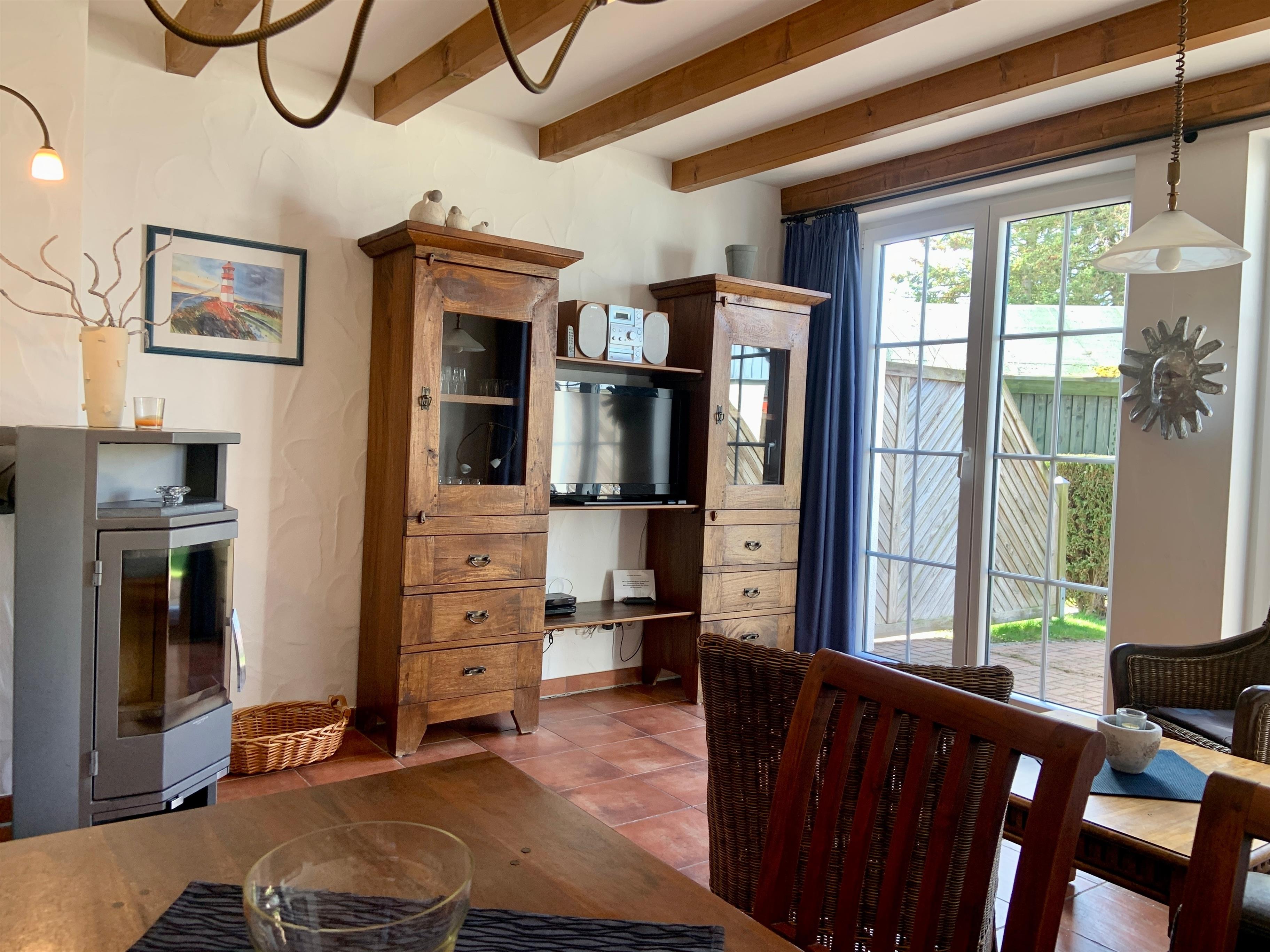Das Wohnzimmer ist rustikal eingerichtet und die Küche ist komplett ausgestattet, sodass es an nichts fehlen wird. Die zwei Schlafzimmer im Obergeschoss verfügen jeweils über ein Doppelbett. Die zwei Bäder sind jeweils mit einer Dusche ausgestattet. Im Erdgeschoss werden die Räume dur eine Fußbodenheizung beheizt.