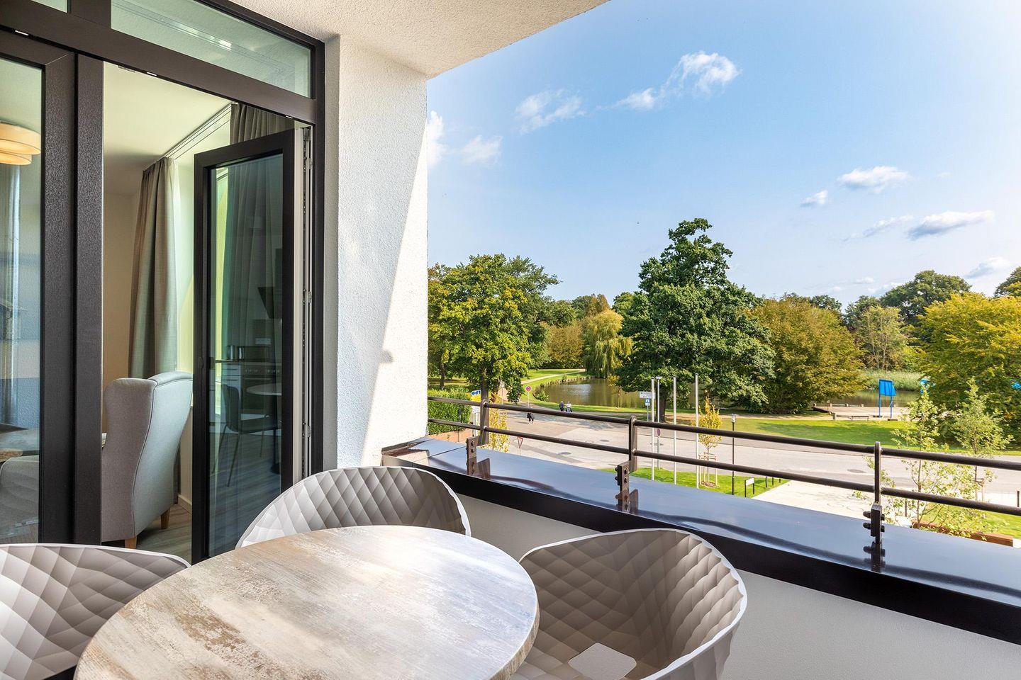 Familienfreundliches Apartment mit Loggia und Meeresblick in Travemünde, nahe Strand und Park.