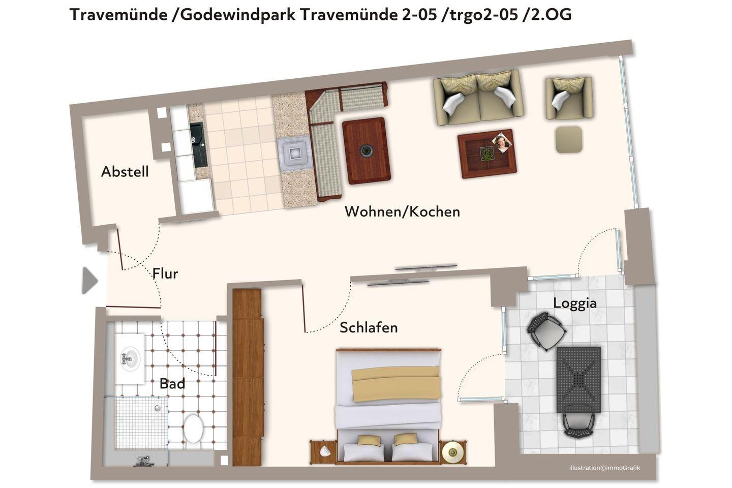 Das 53 m² große 2-Zimmer Apartment ist für bis zu 4 Personen geeignet. Besonders hervorzuheben ist die überdachte Loggia in sonniger West-Lage; hier könnt ihr das wohltuende, maritime Klima der nahen Ostsee und die Sonne bis in den Abend hinein genießen.