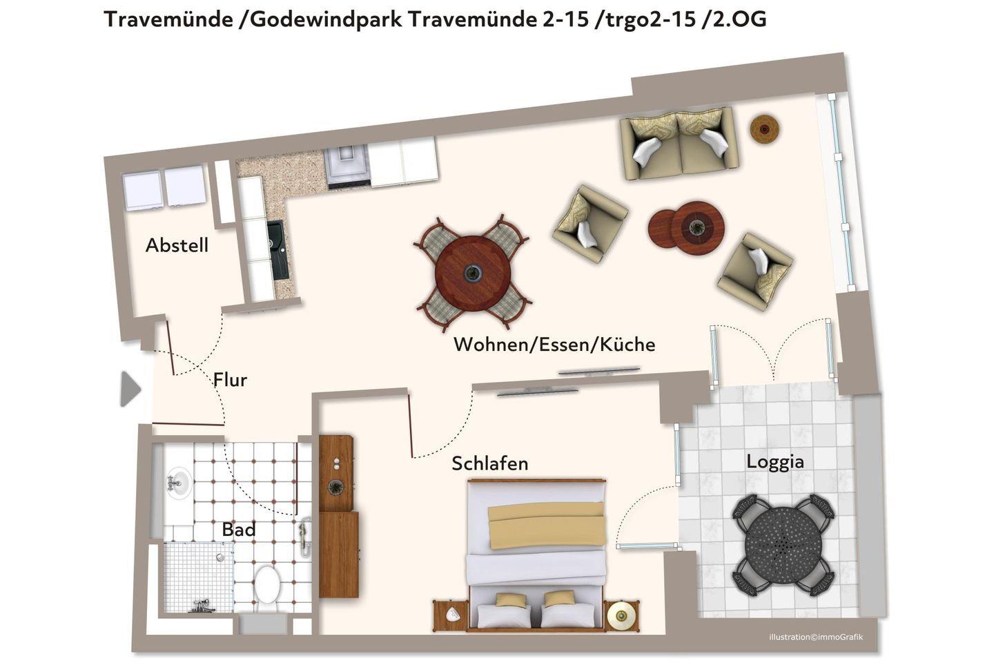 Das 53 m² große 2-Zimmer Apartment ist für bis zu 4 Personen geeignet. Besonders hervorzuheben ist die überdachte Loggia in sonnenreicher Süd-West-Lage; hier könnt ihr den ganzen Tag das wohltuende Meeresklima der nahen Ostsee und die Sonne bis in den Abend hinein genießen.