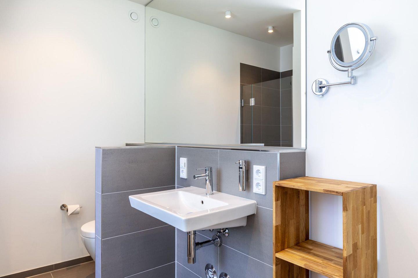 Im Wohnbereich befindet sich ein SMART-TV (43 Zoll); von hier aus habt ihr auch Zugang zu der sonnigen nach Süd-Westen gelegenen Dachterrasse. Hier könnt ihr schöne Stunden mit der ganzen Familie verbringen. Die drei separaten Schlafzimmer auf der ersten Etage bieten hohen Schlafkomfort durch moderne Boxspringbetten. Zwei Schlafzimmer sind überdies mit einem eigenem Flatscreen-TV (43 Zoll) ausgestattet. Zwei stilvolle Badezimmer stehen euch zur Verfügung und lassen den Urlaubstag bereits am Morgen entspannt beginnen. Die Badezimmer verfügen jeweils über ebenerdige Duschen, WC, Waschbecken mit Föhn, Handtuchheizkörper und Fußbodenheizung. Eines der Badezimmer verfügt über eine Badewanne und ist direkt mit einem der Schlafzimmer verbunden. Das zweite Schlafzimmer dahingegen hat einen eigenen nach Nord-Osten gelegenen Balkon mit Blick zum idyllischen Godewindpark. Ein Highlight des Apartments ist die eigene Sauna im zweiten Badezimmer. Hier entspannt ihr ganz privat.