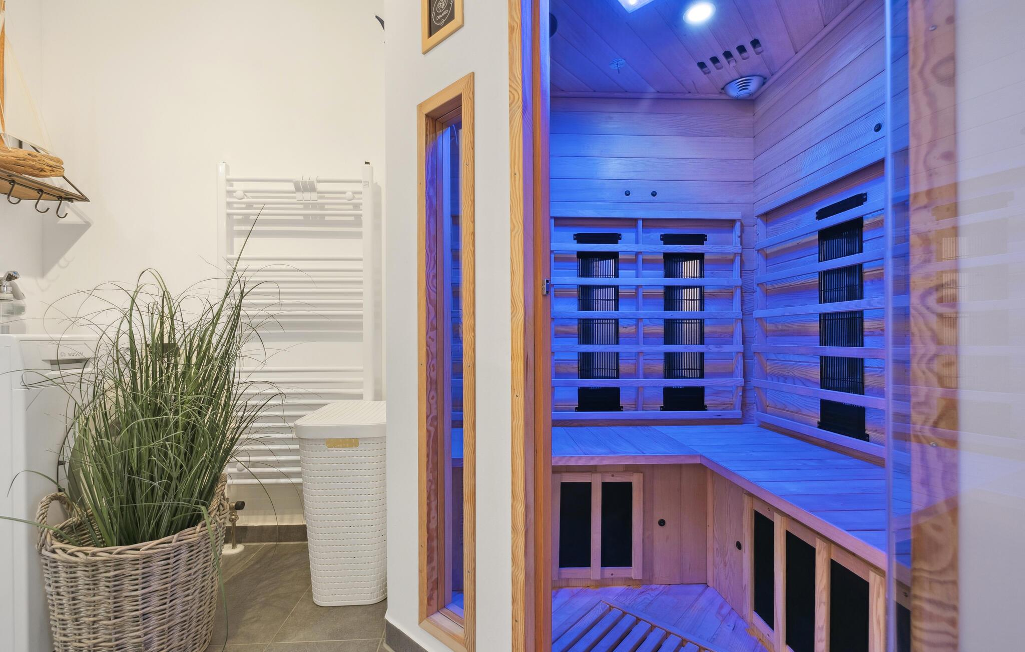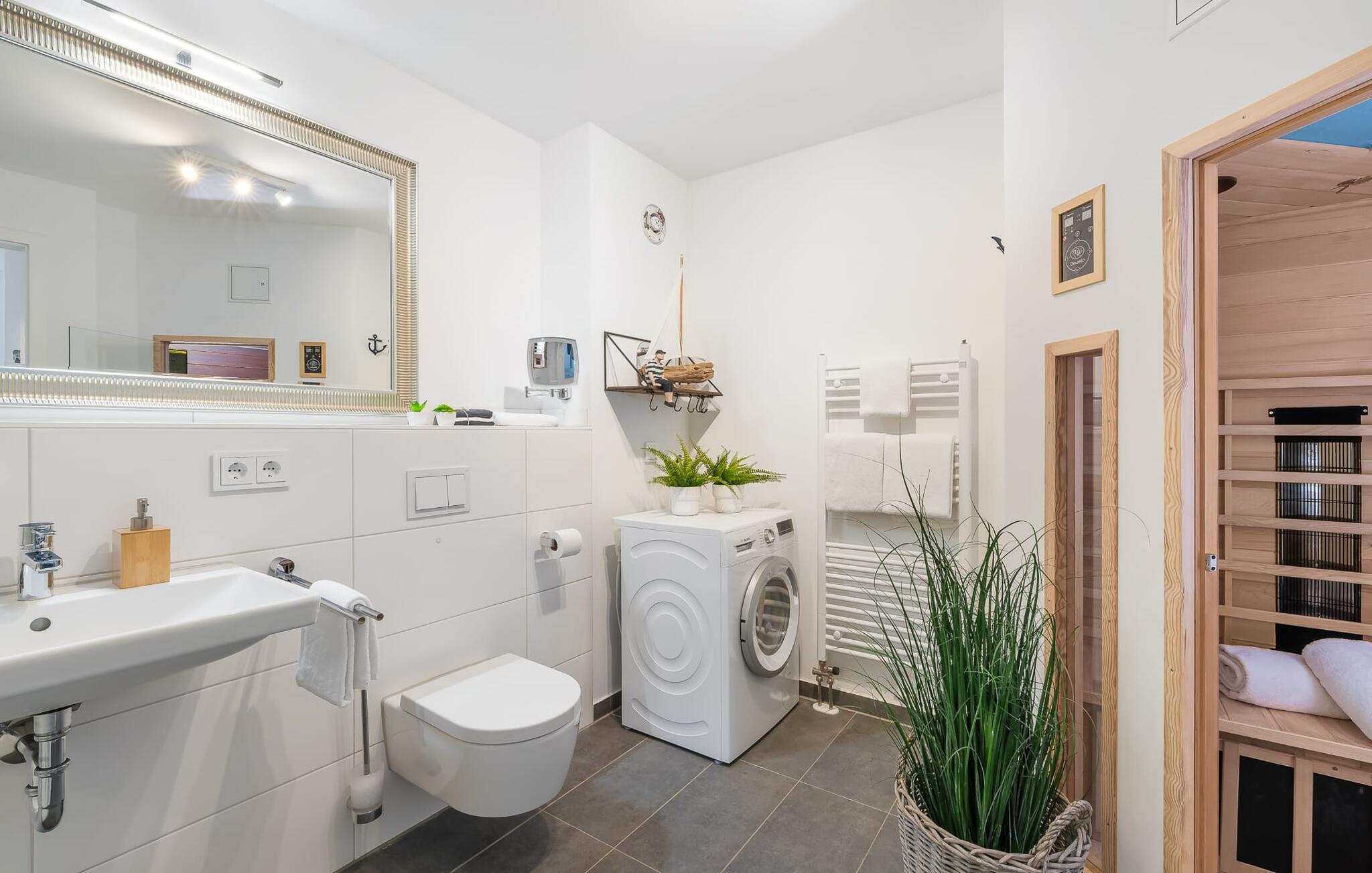 Zudem befindet sich auf dieser Etage ein bestens ausgestattetes Badezimmer mit bodengleicher Dusche und Infrarot-Sauna.