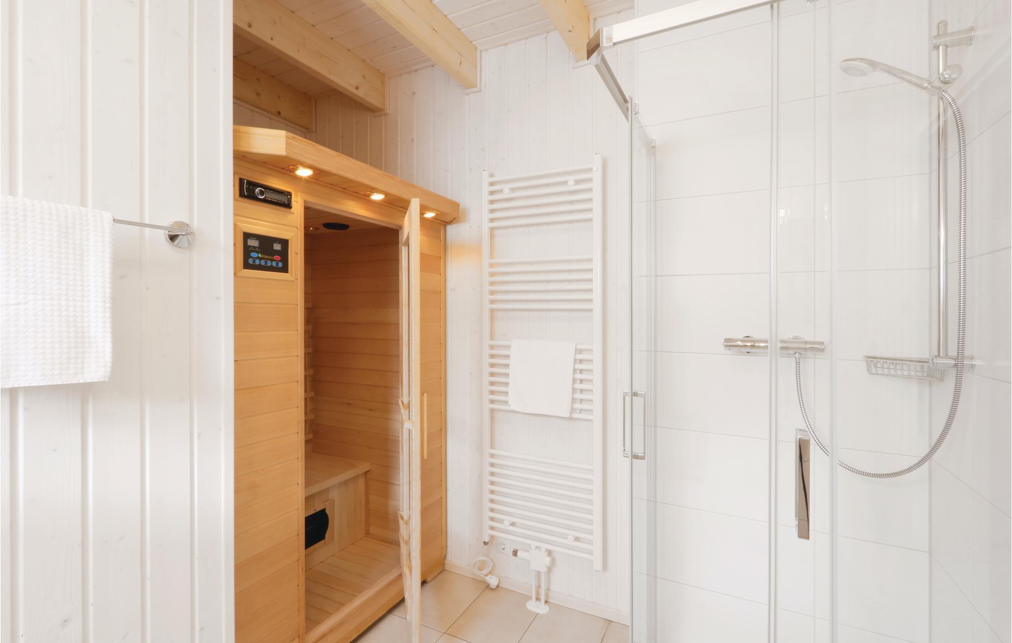 Viel Platz bietet Ihnen dieses Ferienhaus über zwei Etagen, das im Ferienpark OstseeResort Olpenitz liegt. Es liegt nur einen ganz kurzen Spaziergang vom traumhaft schönen Strand der Ostsee entfernt, und auch der Yacht- und Segelhafen von Olpenitz mit seinem bunten Treiben liegt direkt vor den Toren des Ferienparks. Oben liegen die beiden großzügigen Schlafzimmer und eines der beiden Badezimmer. Im Bad im Erdgeschoss befindet sich die private Infrarot-Wärmekabine des Ferienhauses.