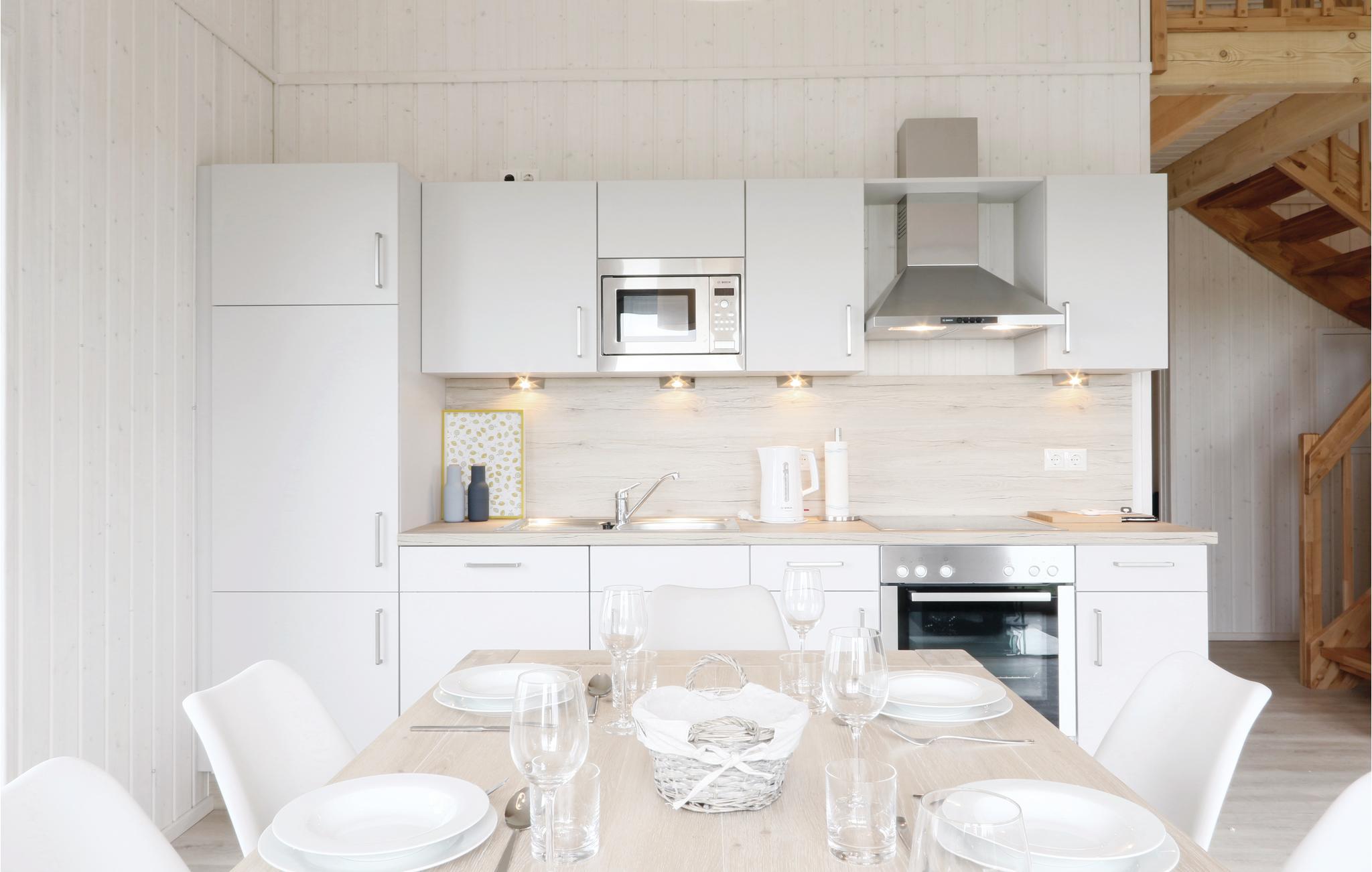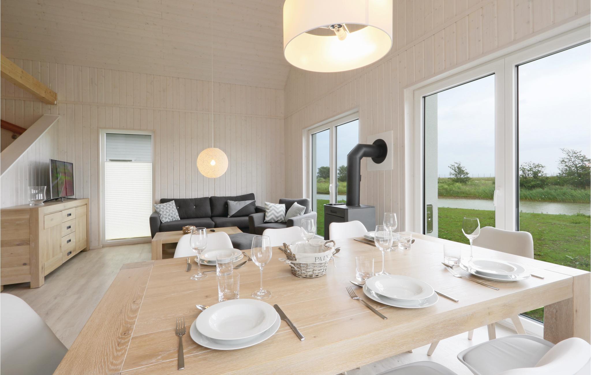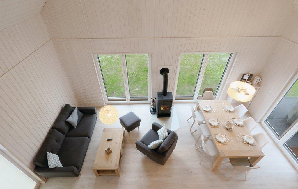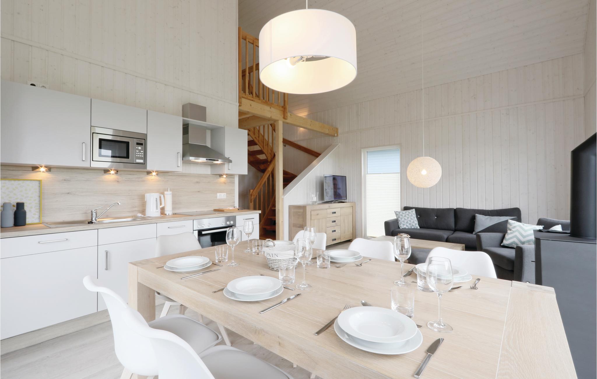 Dieses schicke Holzhaus über 2 Etagen liegt im Ferienpark OstseeResortOlpenitz in unmittelbarer Nähe zur Ostsee. Hier finden Sie und Ihre Lieben alles, was Sie für einen gelungenen Urlaub brauchen: im Erdgeschoss des Hauses liegen zwei der insgesamt drei Schlafzimmer sowie der große, loftartig angelegte Wohn- und Essbereich. Die hohen Decken und die großen Panoramafenster sorgen für besonders viel Lichteinfall und ein herrlich großzügiges Wohngefühl. Von hier aus haben Sie Zugang zur 12 m² großen Terrasse, auf der es sich herrlich entspannen, sonnenbaden und grillen lässt. Im Winter zaubert das flackernde Feuer im skandinavischen Kaminofen im Wohnbereich eine besonders gemütliche Atomsphäre.