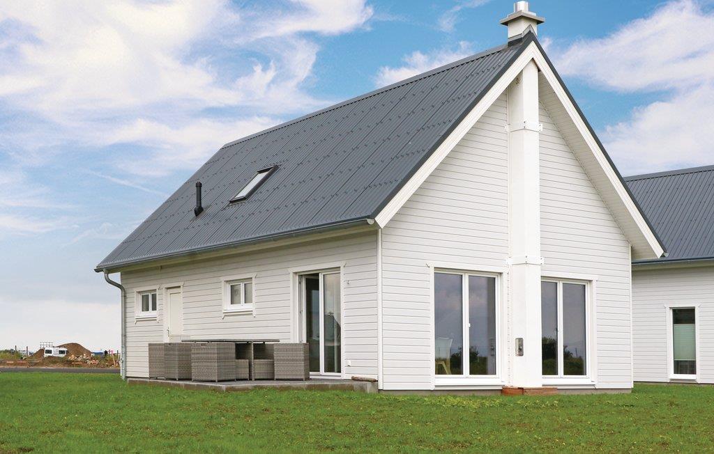 Modernes Holzhaus im OstseeResort Olpenitz mit Panoramablick, Wellnessbad und Terrasse in Meeresnähe.