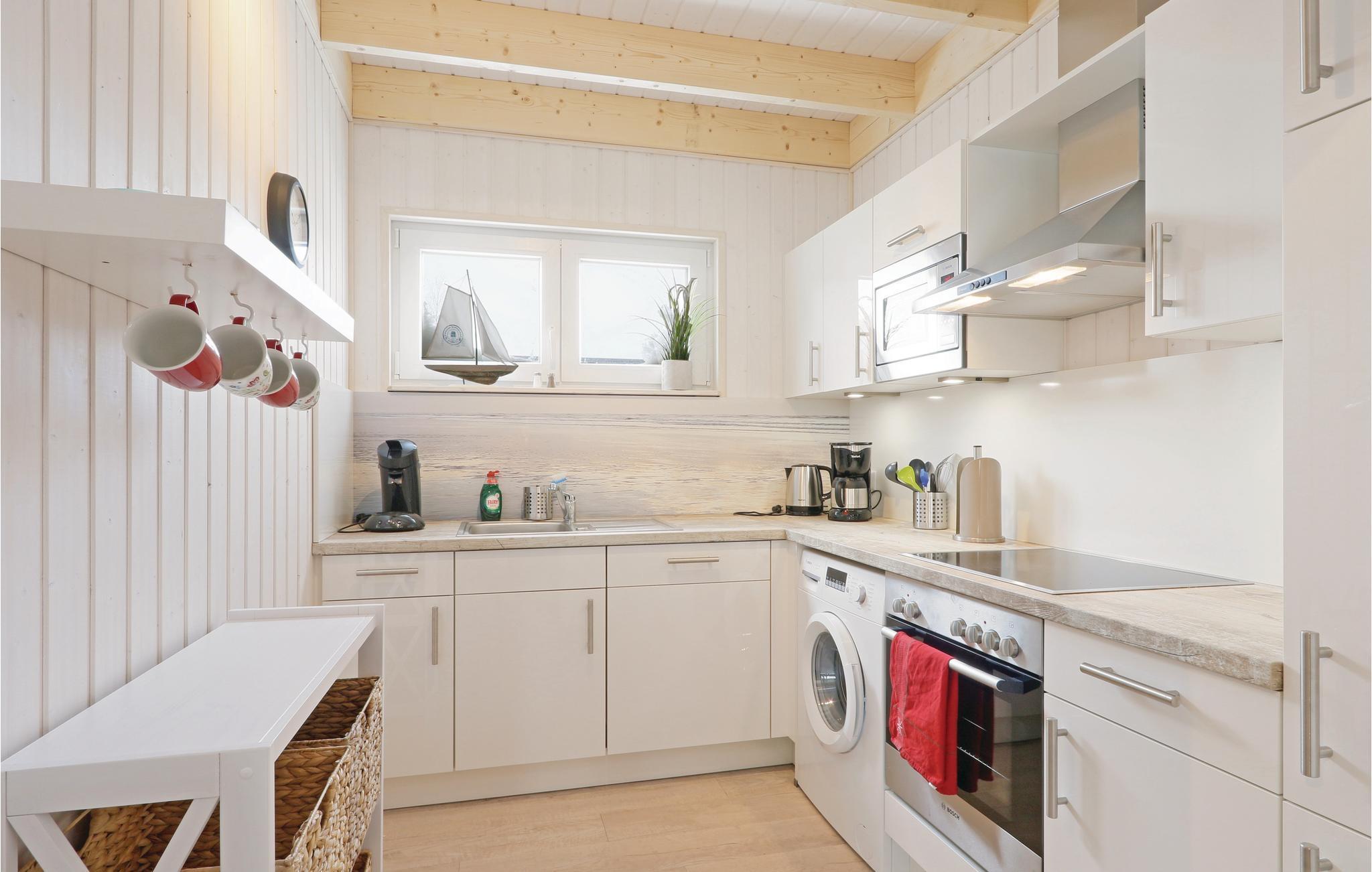 Genießen Sie Ihren Urlaub in diesem schönen Ferienhaus im Ferienpark OstseeResort Olpenitz. Die Unterkunft ist modern und hochwertig ausgestattet. Die Zimmer erstrecken sich über zwei Etagen. Der Wohnbereich verfügt über einen Kaminofen, der für wohlige Wärme sorgt. Auf dieser Etage befindet sich ebenfalls das Badezimmer mit privater Infrarot-Wärmekabine. Hier können Sie sich nach einem ausgedehnten Strandspaziergang wieder aufwärmen und entspannen. Beide Schlafzimmer sind mit jeweils einem gemütlichen Doppelbett ausgestattet.