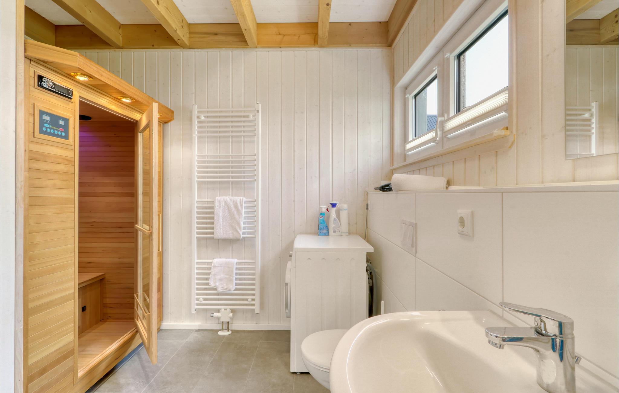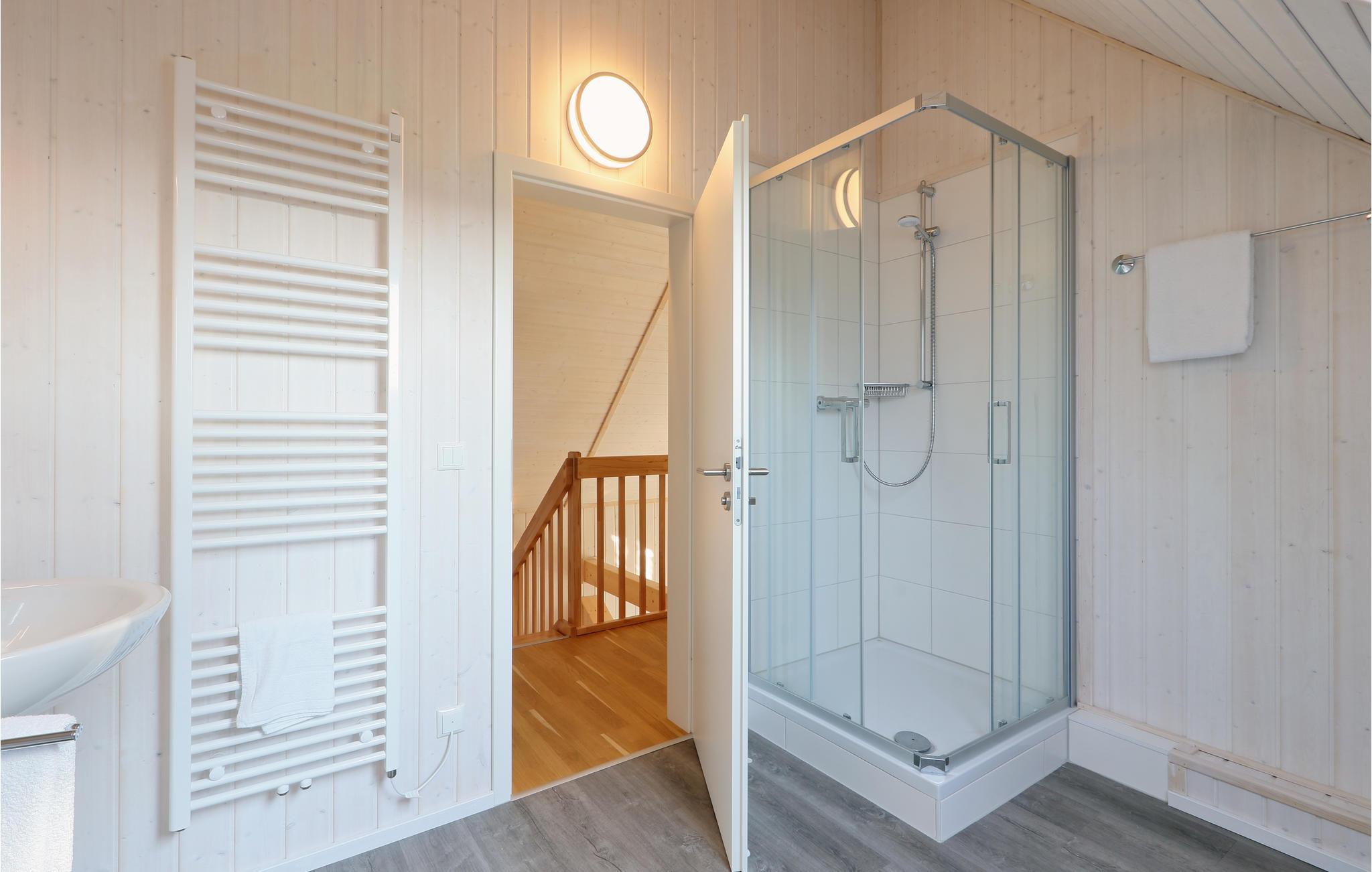 Von hier aus haben Sie Zugang zur großzügigen Terrasse, auf der Sie entspannen, sonnenbaden und grillen können. Grill und Gartenmöbel stehen hier für Sie bereit. Im Winter zaubert das flackernde Feuer im Kaminofen im Wohnbereich eine besonders gemütliche Atomsphäre. Das Bad im Erdgeschoss ist Ihr privates, kleines Wellnessparadies und verfügt über eine moderne Infrarot-Wärmekabine.