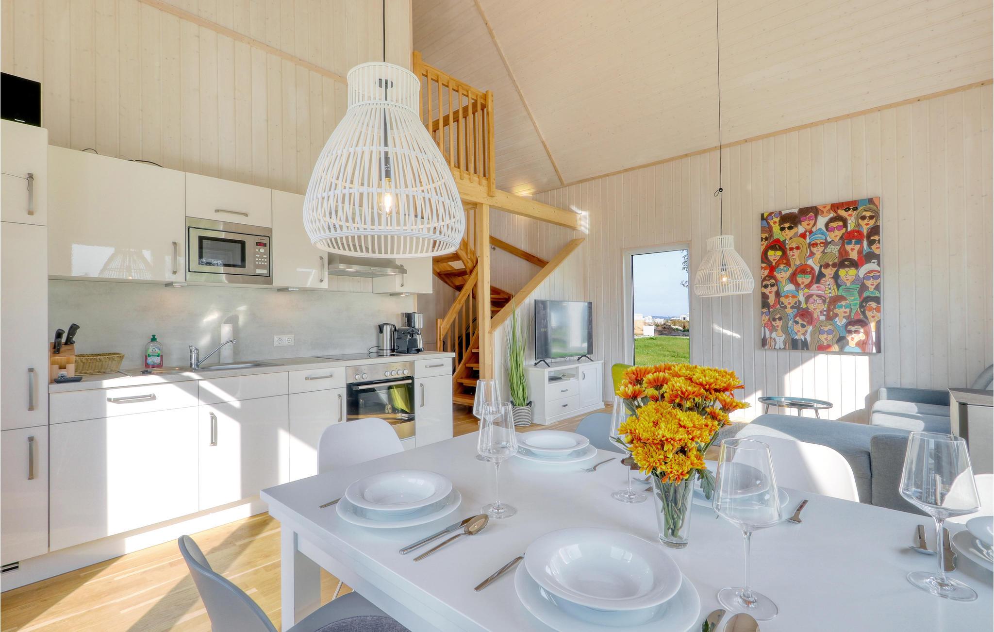 Dieses gemütliche Holzhaus "Strandhaus Sontje" liegt im Ferienpark OstseeResort Olpenitz in unmittelbarer Nähe zur Ostsee. Hier finden Sie und Ihre Lieben alles, was Sie für einen gelungenen Urlaub brauchen, insgesamt ist ausreichend Platz für bis zu 6 Personen. Im Erdgeschoss des Hauses liegen zwei der insgesamt drei Schlafzimmer sowie der große, loftartig angelegte Wohn- und Essbereich.