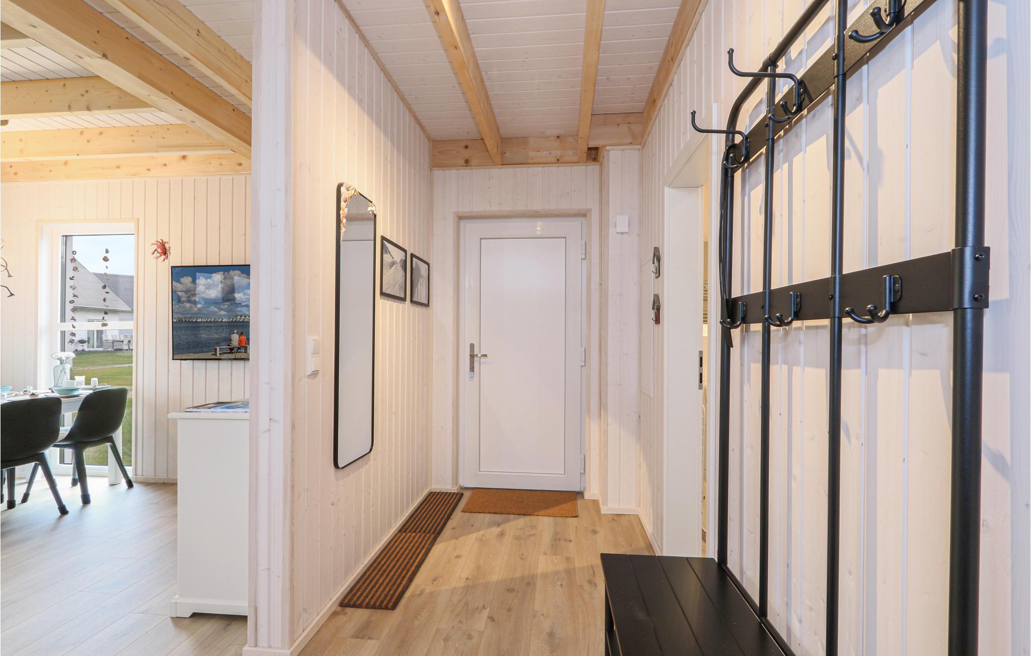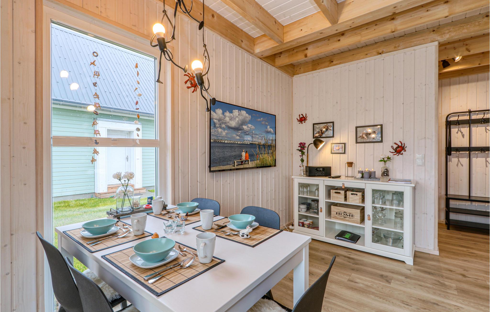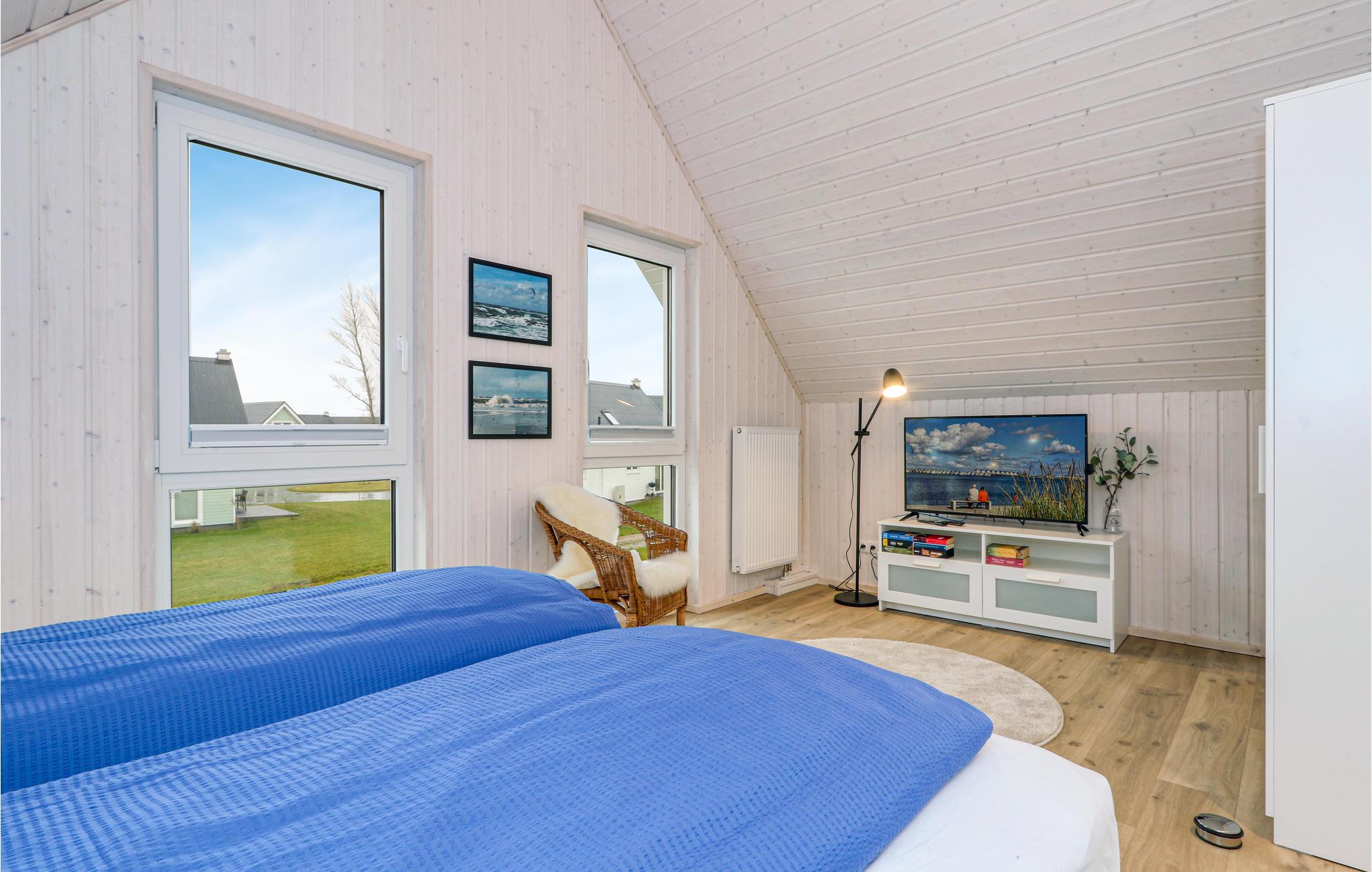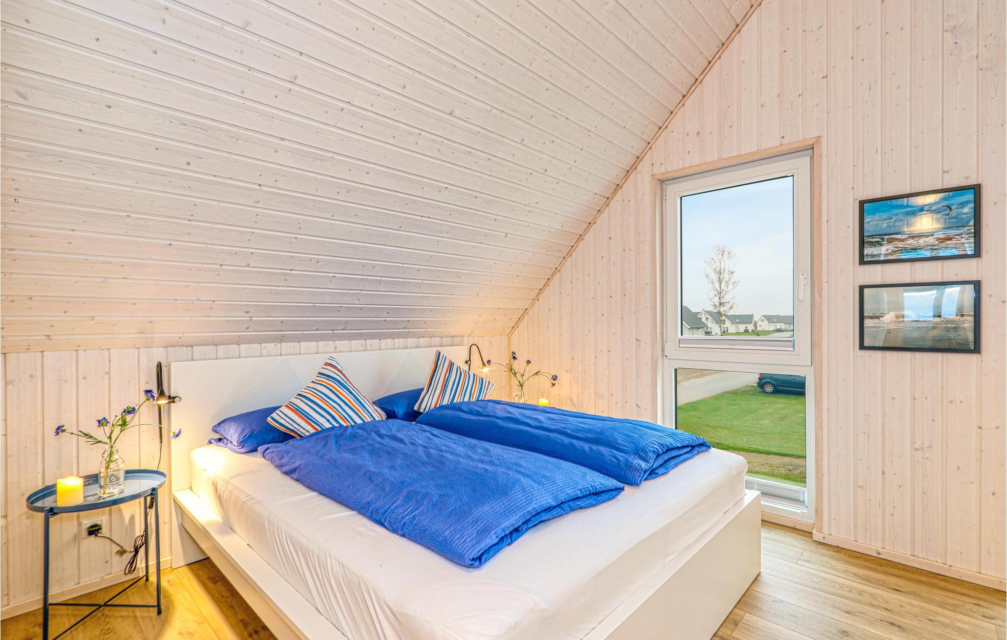 Die Zimmer erstrecken sich über zwei Etagen. Im Bad im Erdgeschoss befindet sich die private Sauna des Ferienhauses, in der Sie nach einem langen Tag an der Ostsee herrlich entspannen können. Anschließend können Sie es sich vor dem Kaminofen im Wohnzimmer gemütlich machen. Zwei Smart-TVs sowie ein DAB Kassettenradio sind ebenfalls vorhanden. Eines der Schlafzimmer verfügt über ein Doppelbett, das zweite Schlafzimmer hat zwei Einzelbetten und einen ausklappbaren Schlafsessel mit Lattenrost und Matratze. Hier befindet sich auch eine kleine Spielecke für Kinder, in der die Kleinen viel Spaß haben werden.