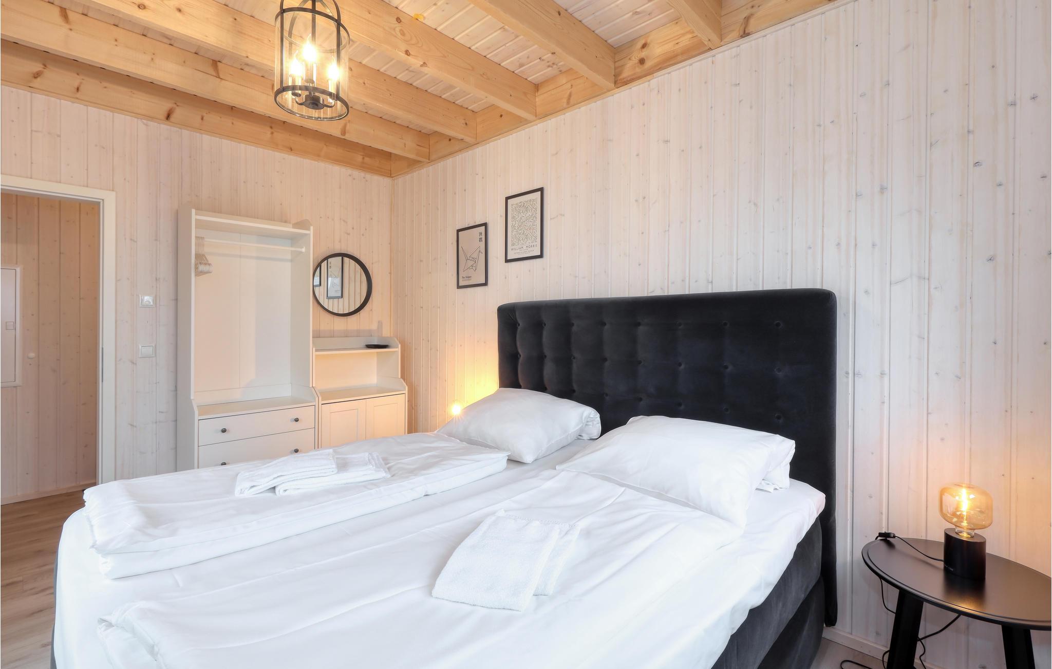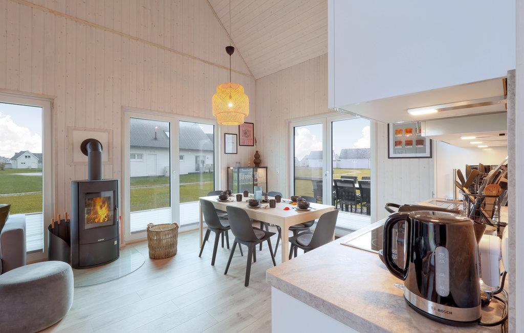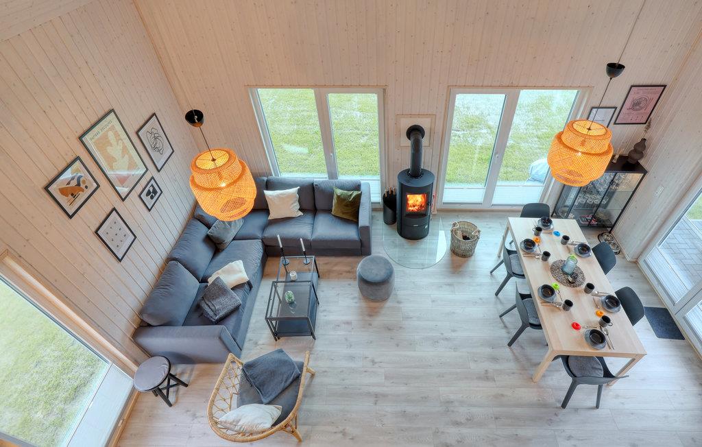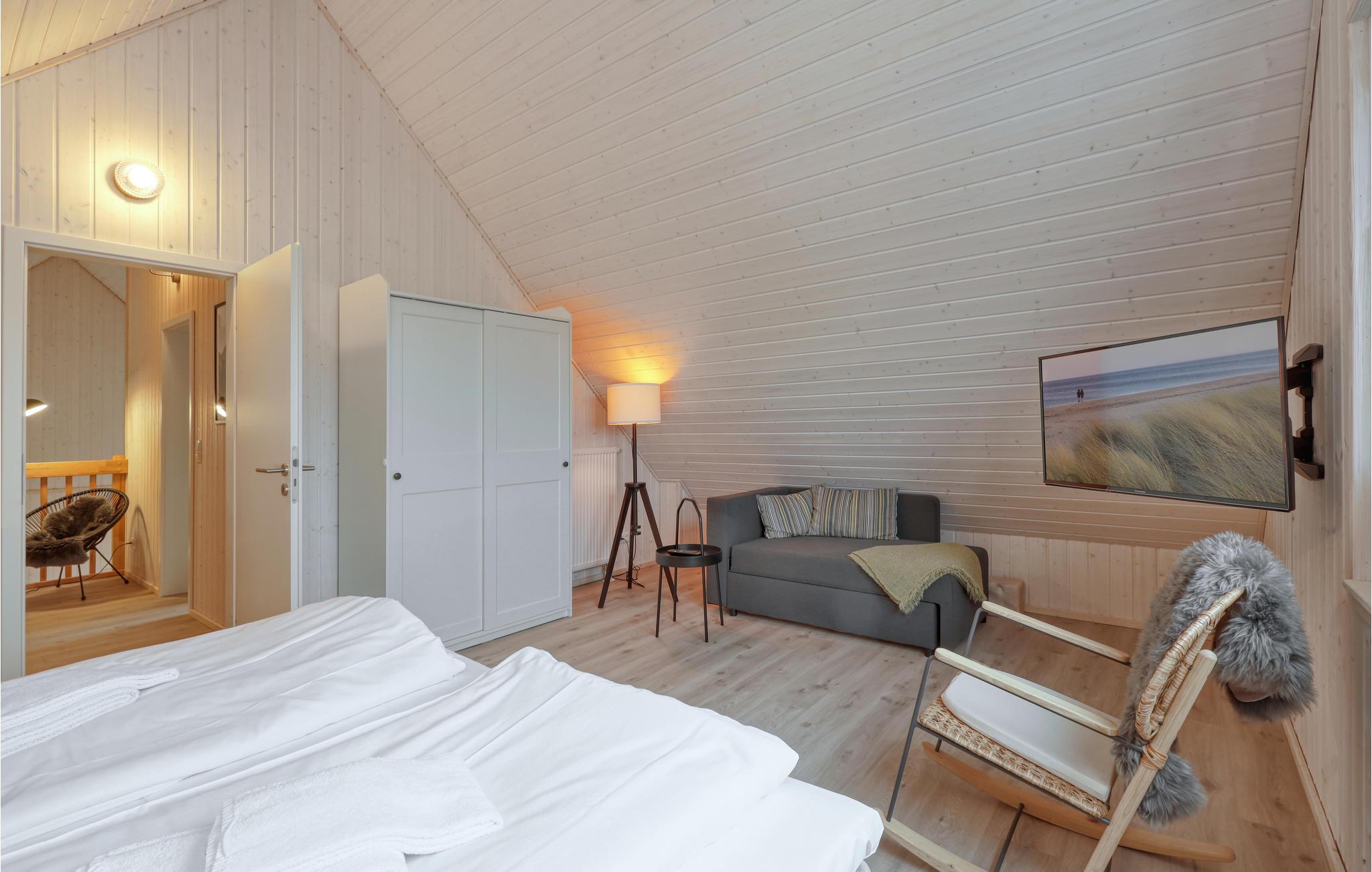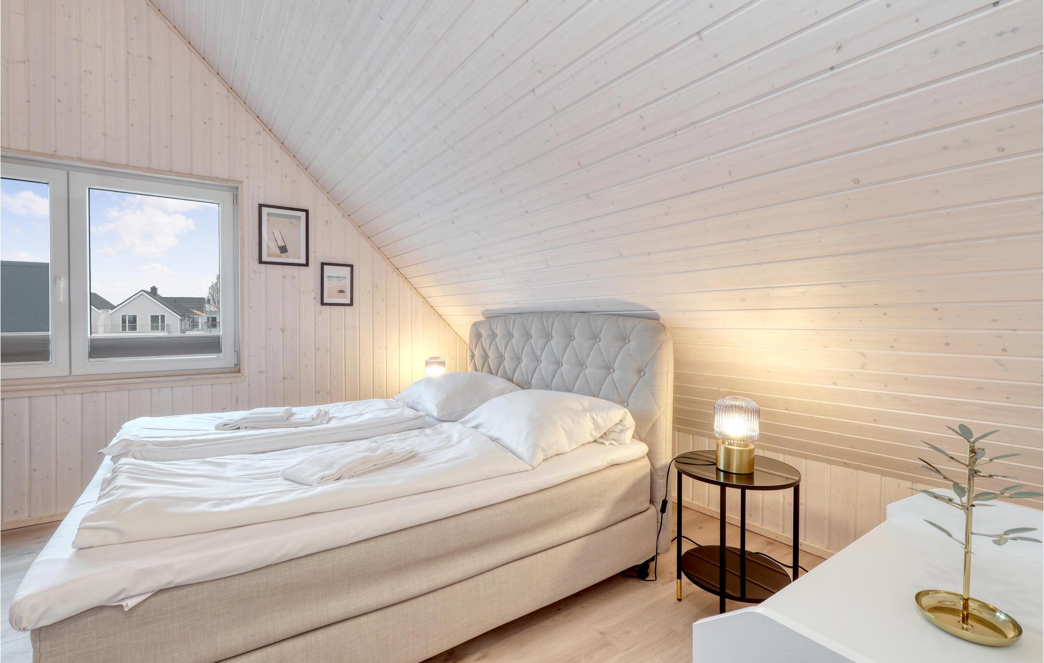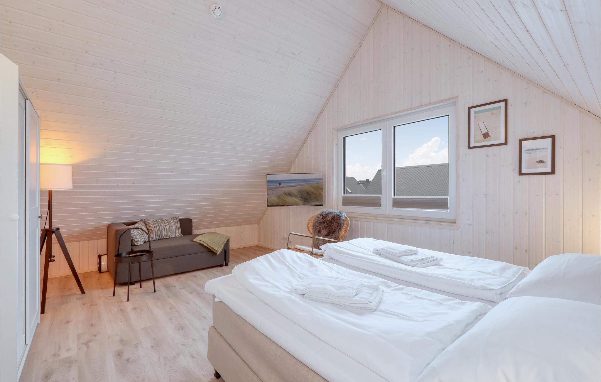 Hier finden Sie und Ihre Lieben alles, was Sie für einen gelungenen Urlaub brauchen: im Erdgeschoss des Hauses liegen zwei der insgesamt drei Schlafzimmer sowie der große, loftartig angelegte Wohn- und Essbereich. Die hohen Decken und die großen Panoramafenster sorgen für einen besonders schönen Lichteinfall und ein herrlich großzügiges Wohngefühl.