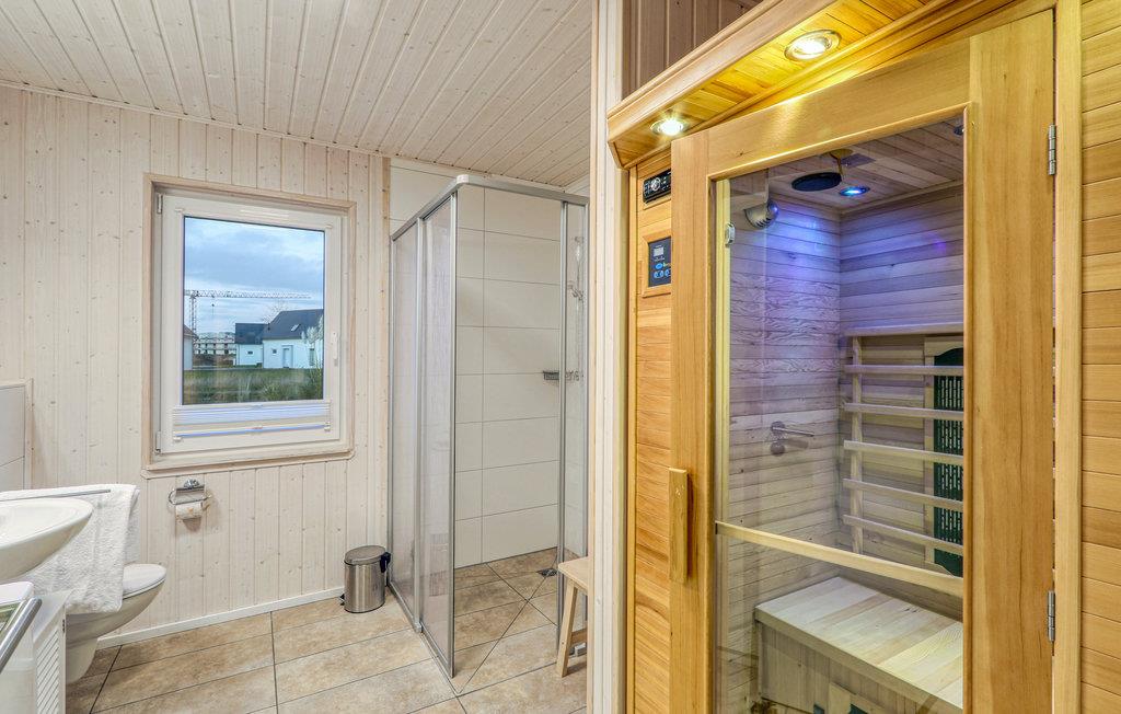 Nicht nur im Sommer, sondern auch in der kälteren Jahreszeit ist das Ferienhaus im OstseeResort Olpenitz immer eine Reise wert. In der Infrarot-Wärmekabine können Sie nach einem langen Strandspaziergang entspannen und es sich danach vor dem knisternden Kaminfeuer gemütlich machen.