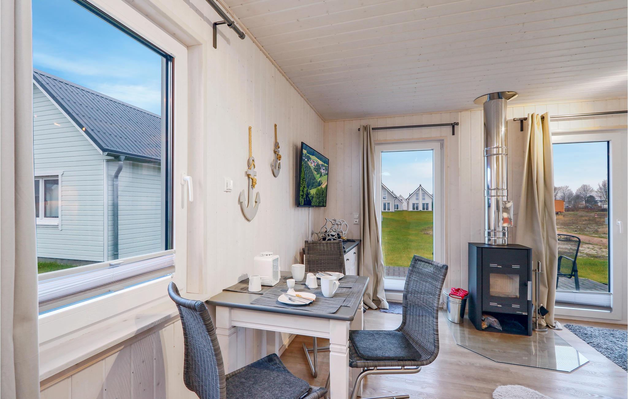 Die Zimmer liegen im Erdgeschoss des Hauses. Das separate Schlafzimmer ist mit einem gemütlichen Doppelbett ausgestattet. Im kombinierten Wohn/Essbereich wurde an alles gedacht. Das Schlafsofa im Wohnbereich bietet Platz für zwei Kinder. Hier sorgt der Kaminofen für gemütliche Stunden und eine wohlige Atmosphäre. Auf der Terrasse können Sie herrlich frühstücken, genießen Sie hier Ihren ersten Kaffee am Morgen an der frischen Ostseeluft.