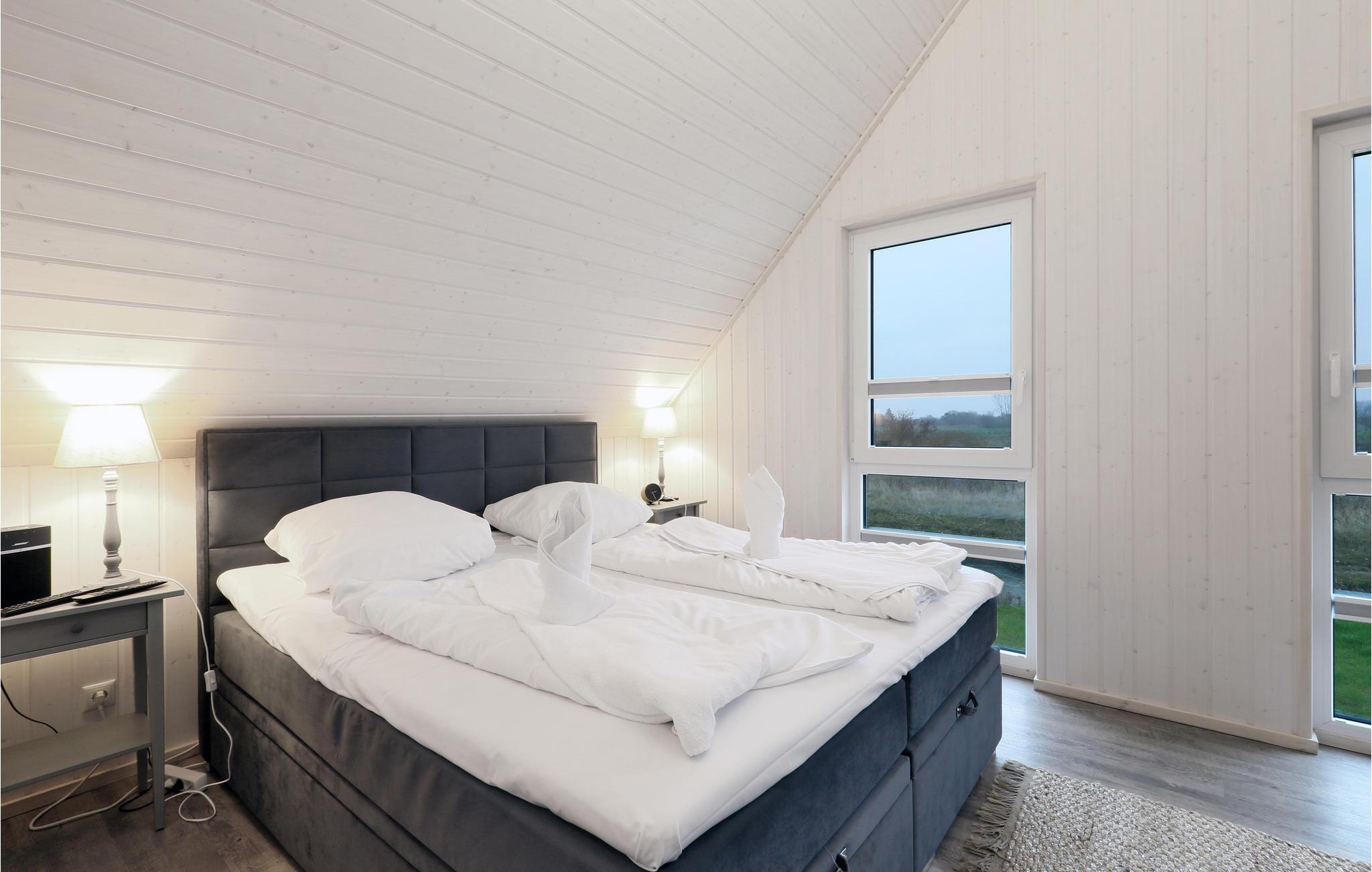 Der Wohnbereich des Ferienhauses ist dank der bodentiefen Panoramafenster besonders hell und freundlich. Die Zimmer, die liebevoll und modern eingerichtet wurden, erstrecken sich über zwei Etagen. Im Objekt sind zwei Smart-TV mit Telekom Magenta TV, Megathek und Zugriff auf Streaming-Dienste vorhanden.