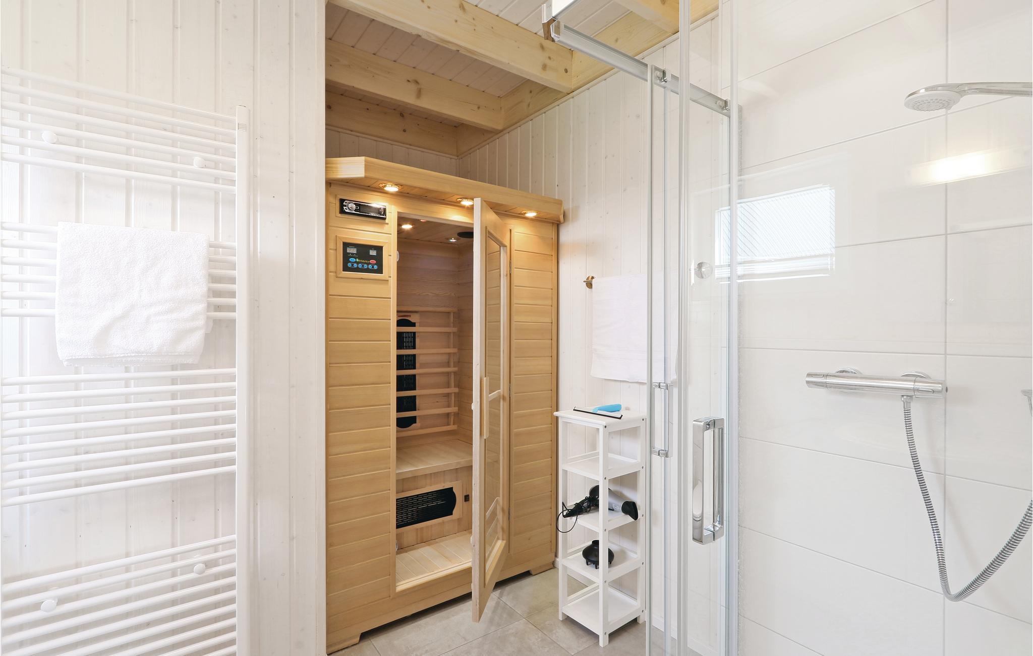 Das Ferienhaus ist modern und gemütlich eingerichtet. In der Infrarot-Wärmekabine können Sie es sich in an kalten Tagen gemütlich machen und anschließend vor dem Kaminofen im Wohnzimmer entspannen. Ein Blu-Ray Player steht hier zur Verfügung, so dass einem Filmabend nichts im Wege steht.
