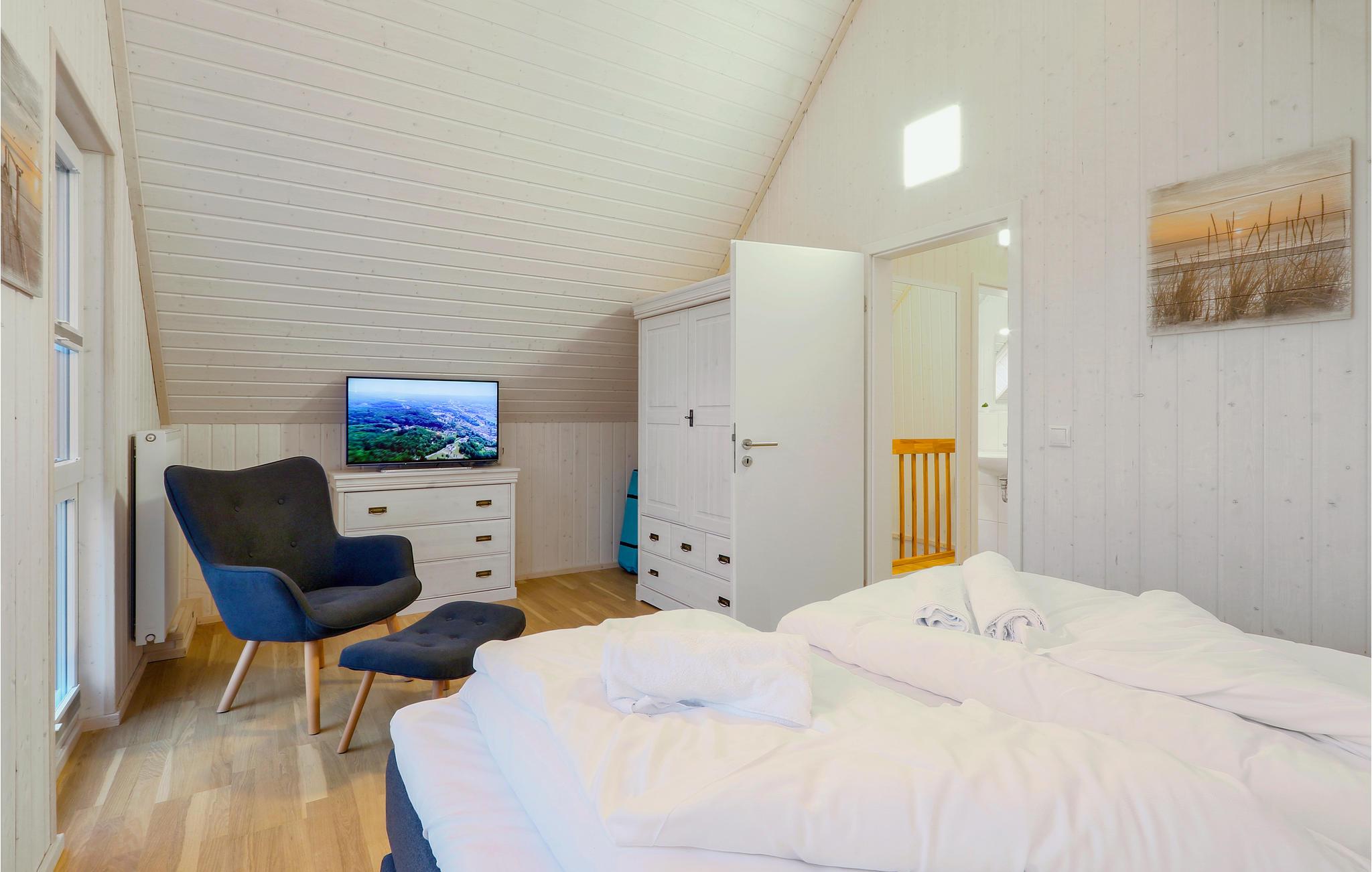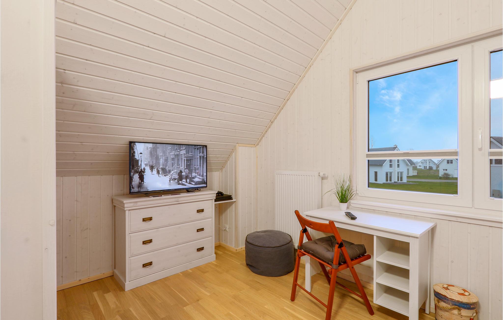 Mitten im Ferienpark OstseeResort Olpenitz befindet sich dieses geräumige Ferienhaus mit schönem Blick auf das Meer. Die Zimmer erstrecken sich über zwei Etagen, somit bietet es Ihnen ausreichend Platz für Ihren Urlaub.
