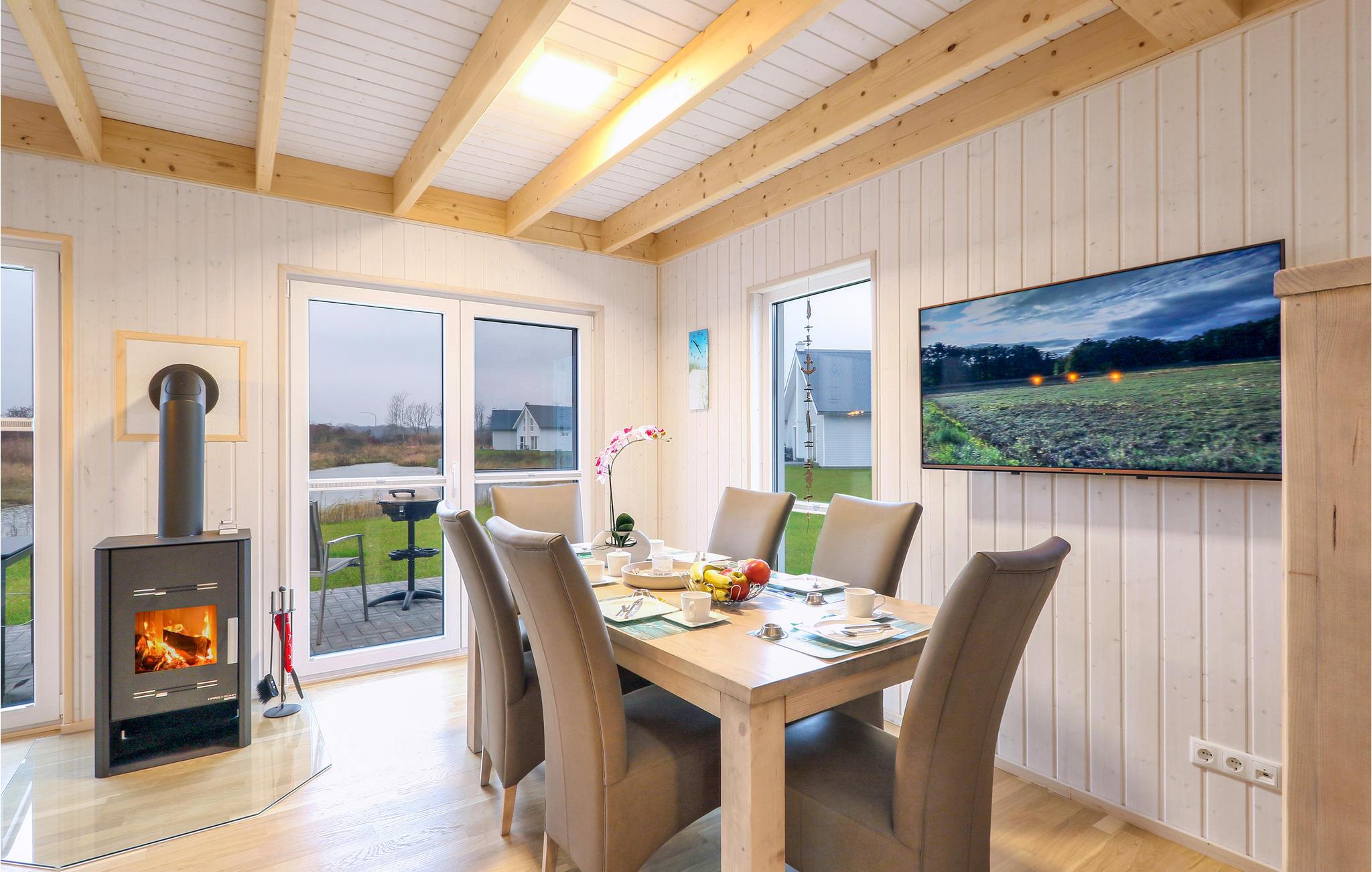 Besonders schön ist die offenen Terrasse des Hauses mit Sonnenschirm, Gartenmöbeln und Grill. Hier können Sie entspannen oder gemeinsamene Grillabende mit der ganzen Familie genießen. Genießen Sie die herrliche Panoramaaussicht auf den künstlich angelegten Wassergraben sowie die Ostsee. An kalten Tagen sorgt der Kaminofen im Wohnzimmer für eine gemütliche Stimmung.