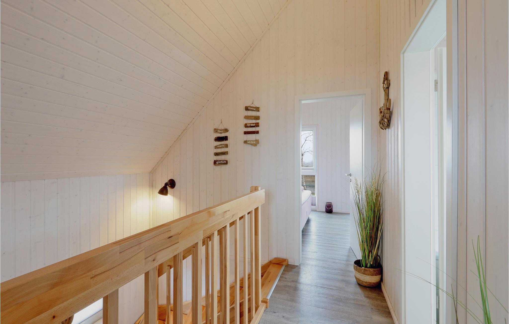 Im Obergeschoss des Hauses liegen die beiden großzügigen, liebevoll eingerichteten Schlafzimmer mit gemütlichen Boxspringbetten sowie eines der beiden Badezimmer. Hier können Sie sich nach einem langen Tag am Meer in Ihrer privaten Infrarot-Wärmekabine aufwärmen. Vom Obergeschoss haben Sie einen schönen seitlichen Blick aufs Meer. Ein weiterer Schlafplatz befindet sich auf dem Schlafsofa im Wohnbereich.