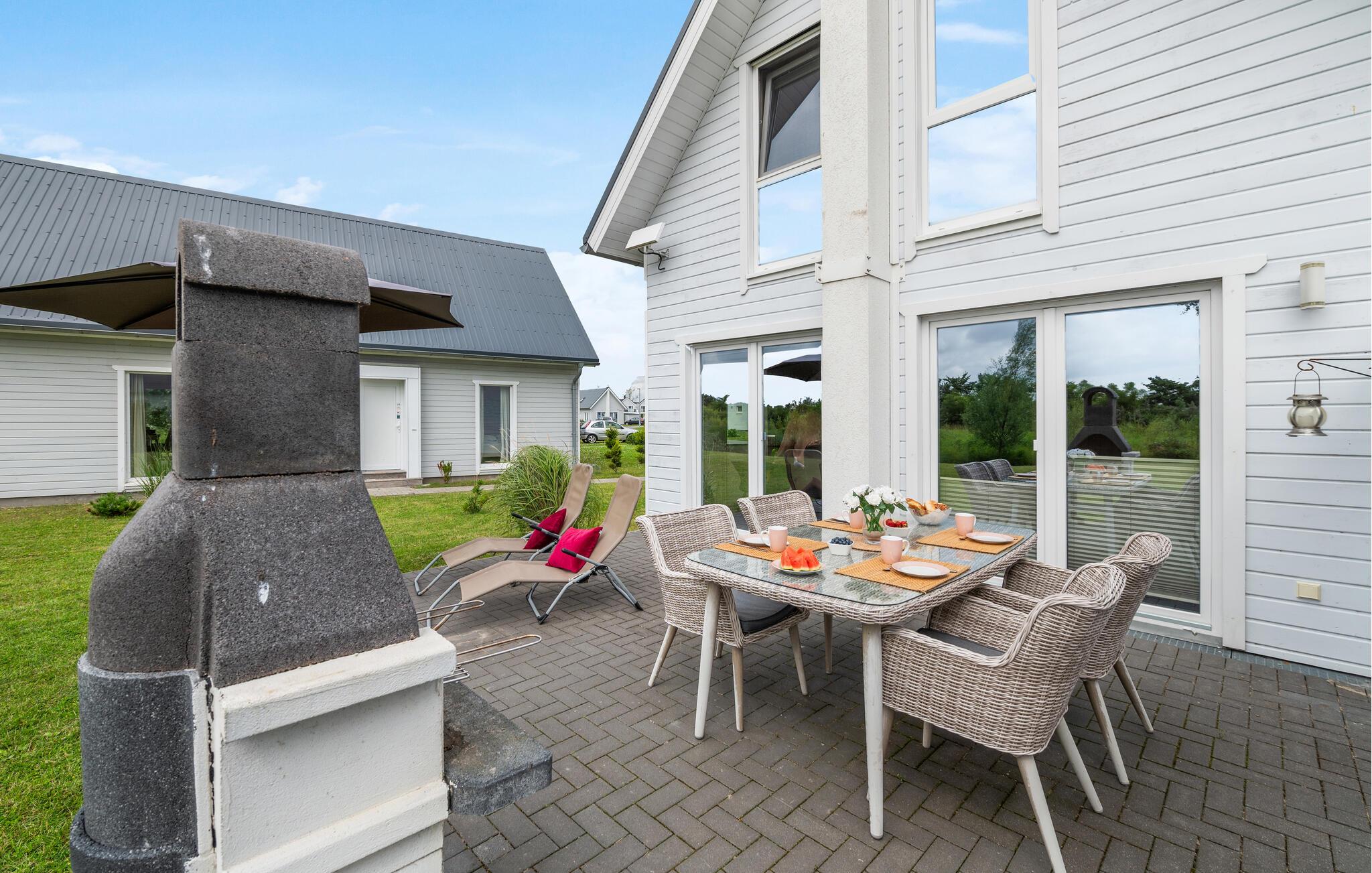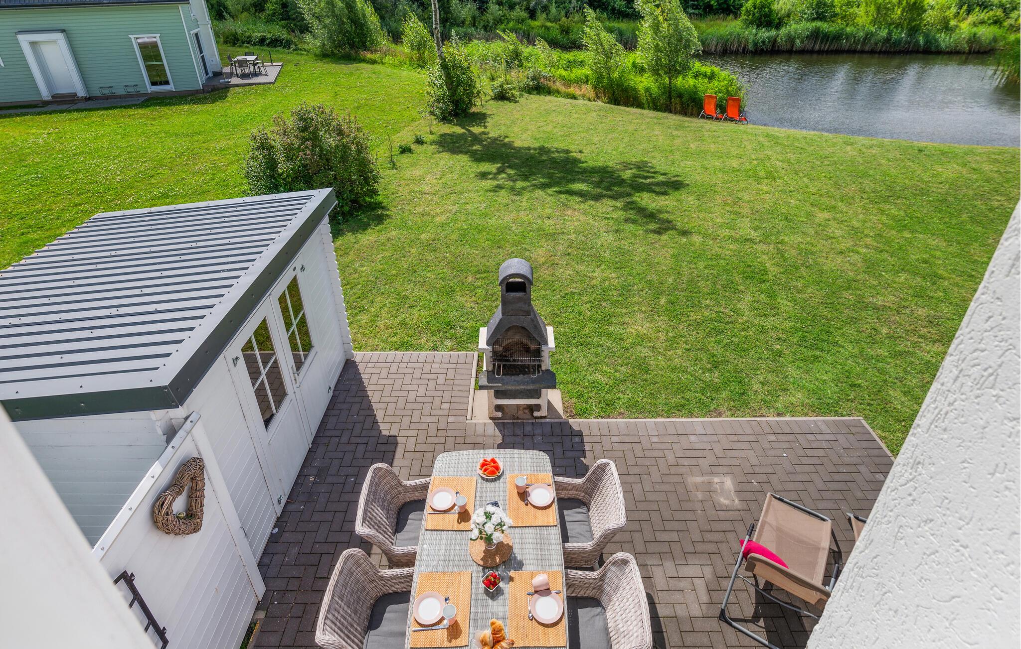 Auf der offenen Terrasse des Hauses können Sie die Sonnenstrahlen genießen oder gemeinsamen Mahlzeiten mit der ganzen Familie einnehmen. Ein Gartenhaus ist für Sie vorhanden. Die hochwertigen und gemütlichen Gartenmöbel laden zum Relaxen ein. Das Haus liegt direkt an einem Wasserlauf, sodass Sie hier den Blick aufs Wasser genießen können. Zudem liegt die nächste Bademöglichkeit zum Wasserlauf nur wenige Meter vom Haus entfernt.