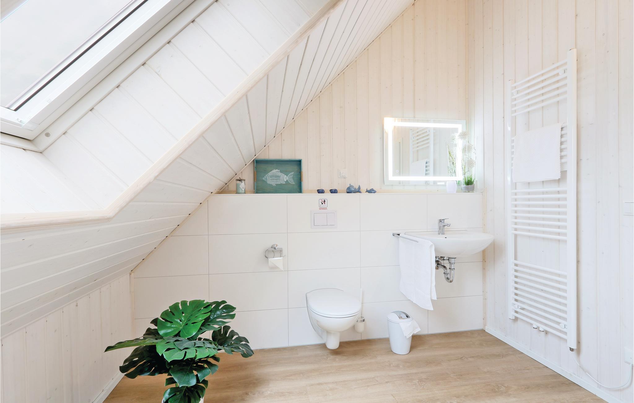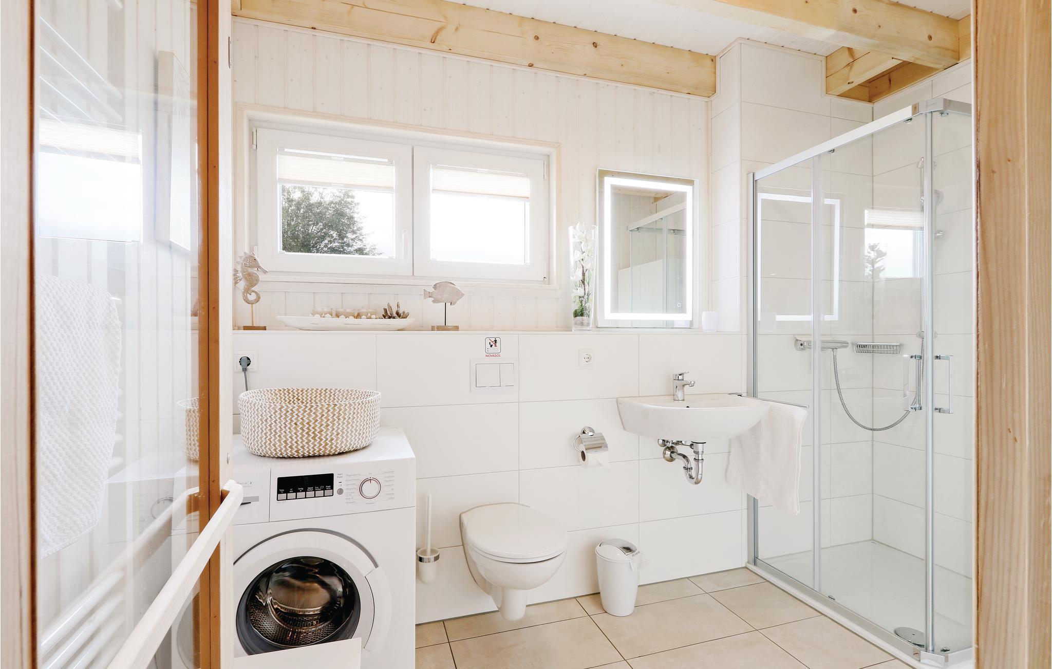 Das Badezimmer im Erdgeschoss ist mit einer Infrarot-Wärmekabine und einer Dusche ausgestattet. Hier können Sie sich nach einem langen Spaziergang an der Ostsee entspannen und erfrischen.