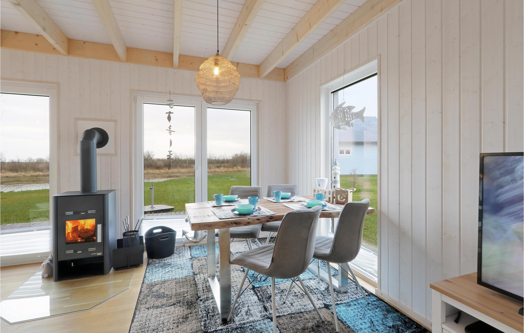 Gemütliches Ferienhaus im OstseeResort Olpenitz mit Kamin, Sauna und direktem Zugang zum Wasserlauf.