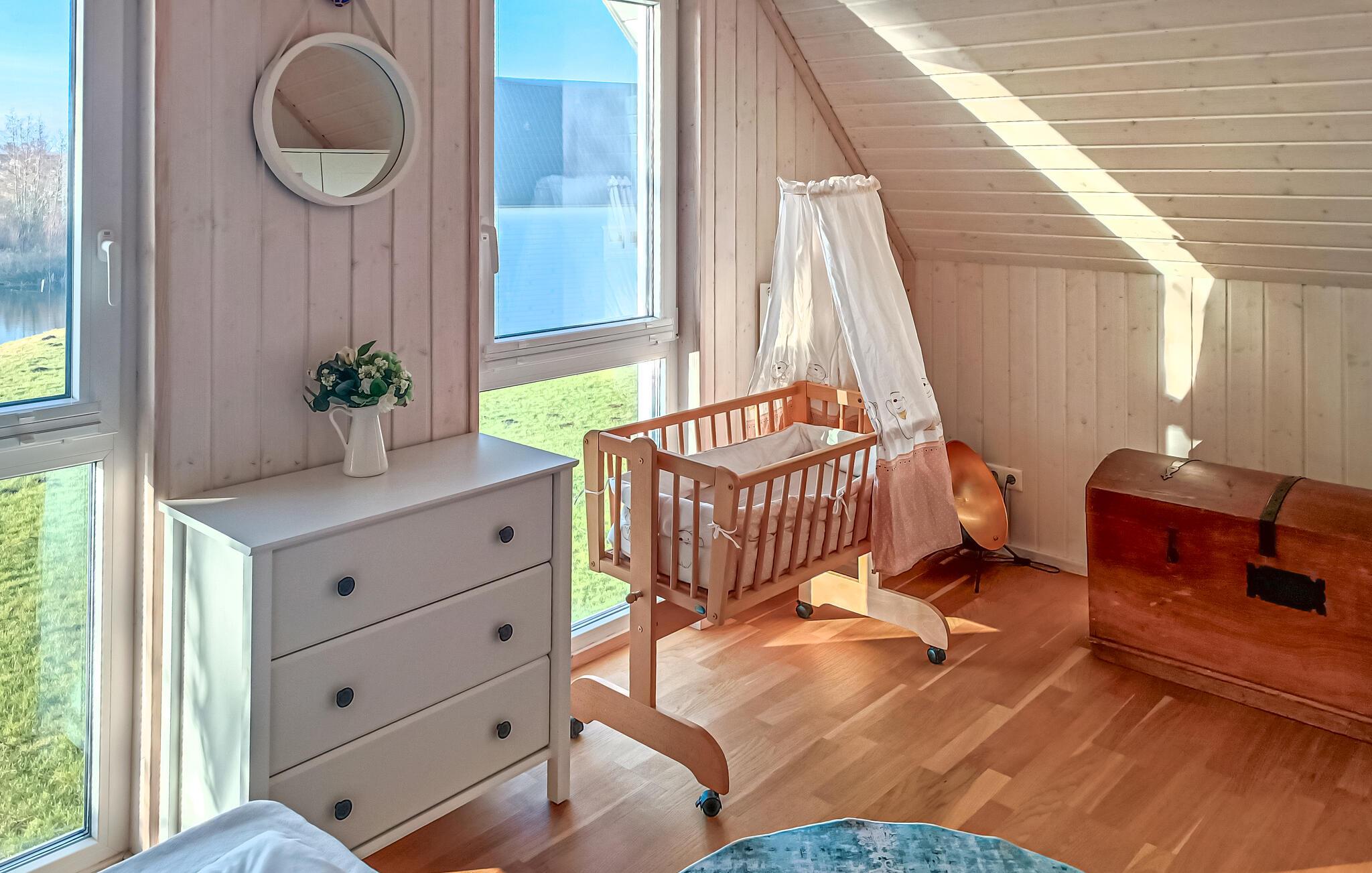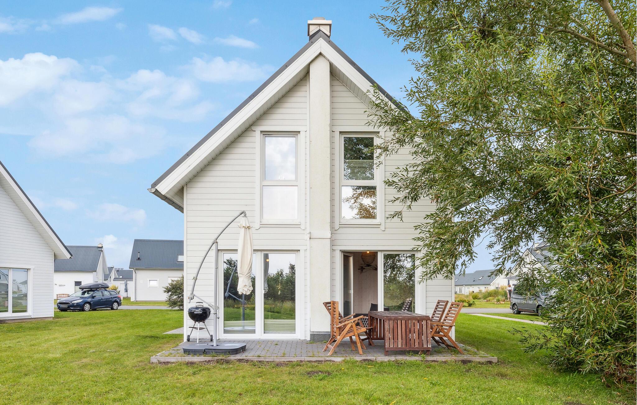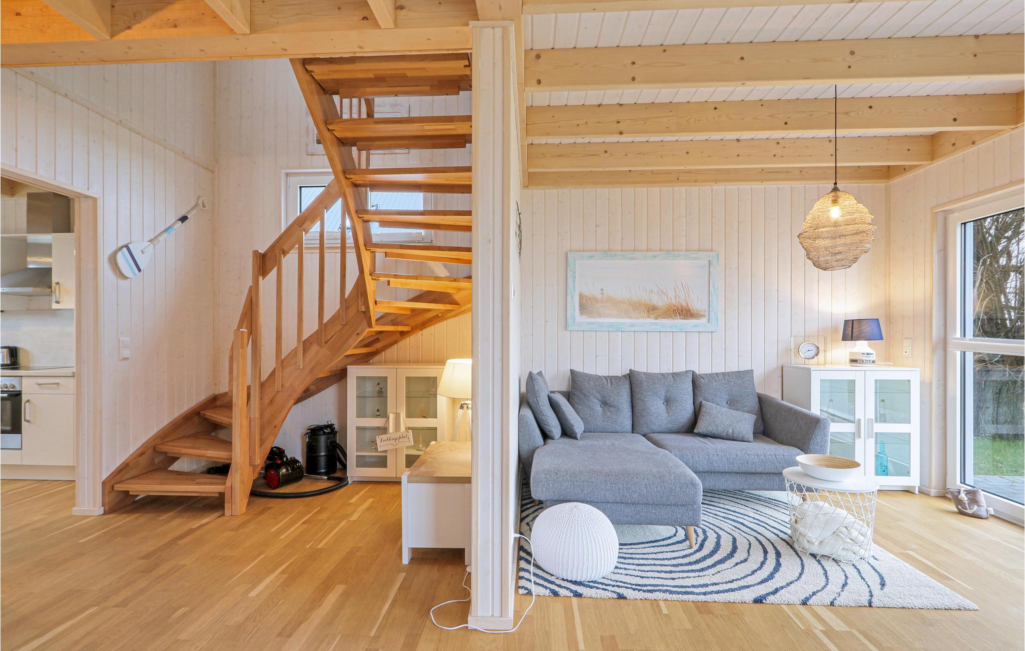 Die Zimmer erstrecken sich übera zwei Etagen. Oben befinden sich zwei Schlafzimmer mit hochwertigen Boxspringbetten und eines der Badezimmer. Im Erdgeschoss liegt der herrlich helle offene Wohn- und Essbereich sowie das zweite Badezimmer, in dem Sie Ihre private Infrarot-Wärmekabine erwartet. Hier können Sie nach einem langen Tag an der Ostsee herrlich entspannen können. Anschließend können Sie es sich vor dem Kaminofen im Wohnzimmer gemütlich machen. oder bei schönem Wetter lange Abende auf der Terrasse genießen. Mit hochwertigen Gartenmöbeln und einem Grill bietet sie einen schönen Platz zum relaxen.