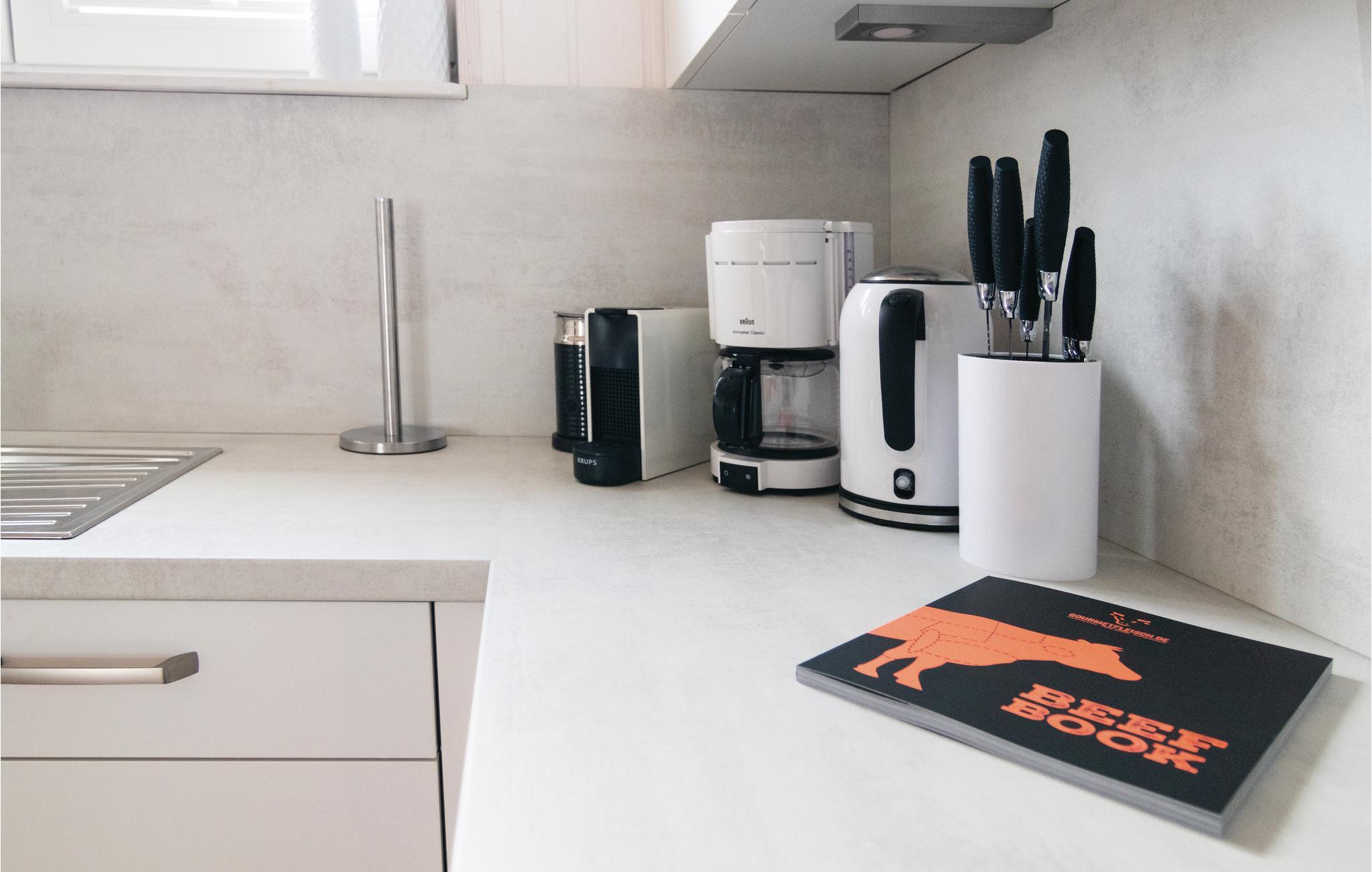 Die Zimmer erstrecken sich über zwei Etagen, es sind zwei separate Schlafzimmer vorhanden. Die hochwertige Küche ist komfortabel ausgestattet, auch eine Nespresso-Kaffeemaschine ist hier vorhanden (Kapseln bitte selbst mitbringen).