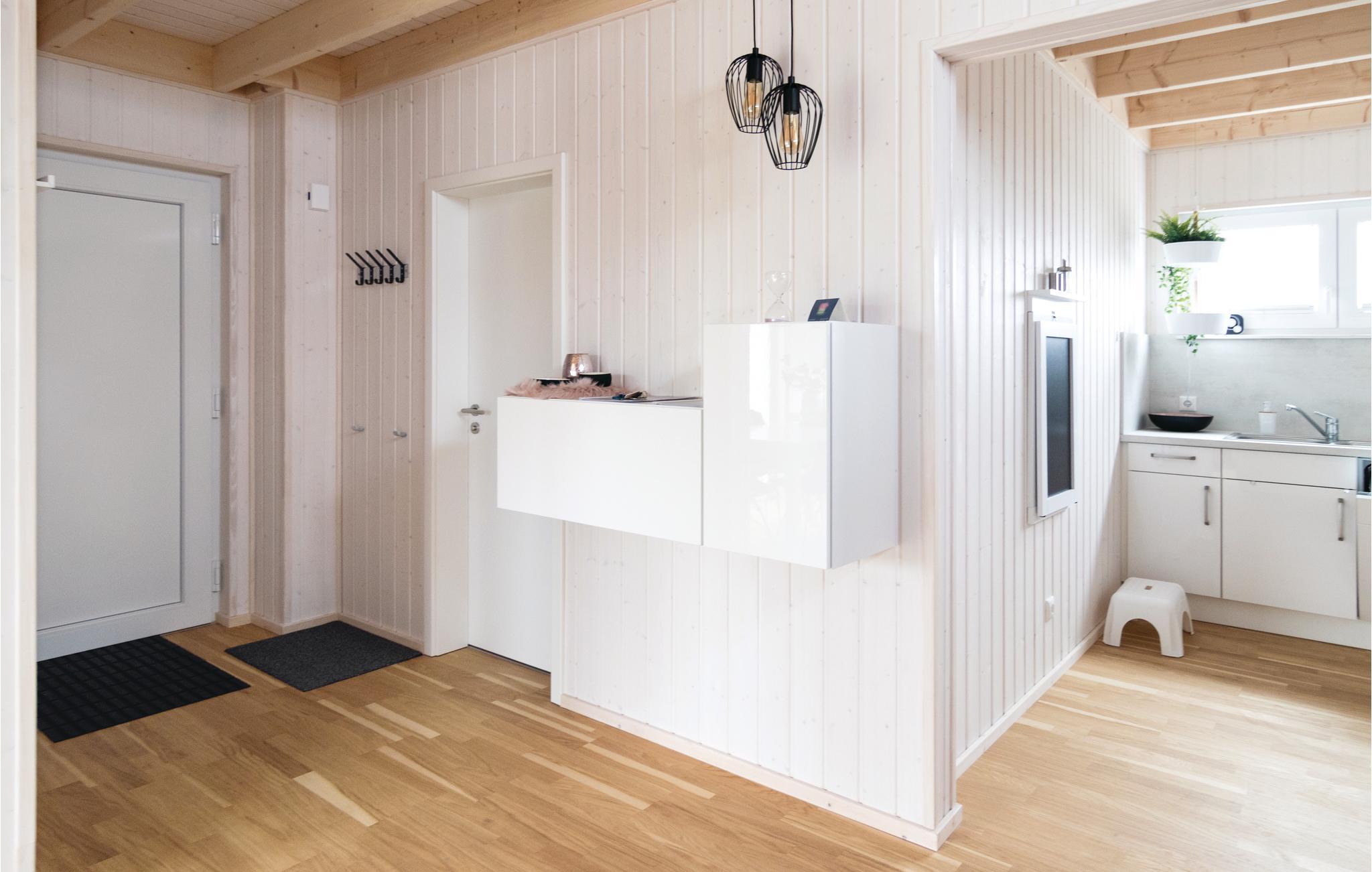Auf der Terrasse mit hochwertigen Gartenmöbeln können haben Sie einen schönen Blick auf den kleinen, angelegten See und auf die Ostsee in der Ferne. Hier können Sie mit der ganzen Familie frühstücken oder einfach nur relaxen und die schöne Aussicht genießen. Ein Bollerwagen sowie Spiele für drinnen und draußen stehen in diesem Haus zur Verfügung, sodass hier garantiert keine Langeweile aufkommt.