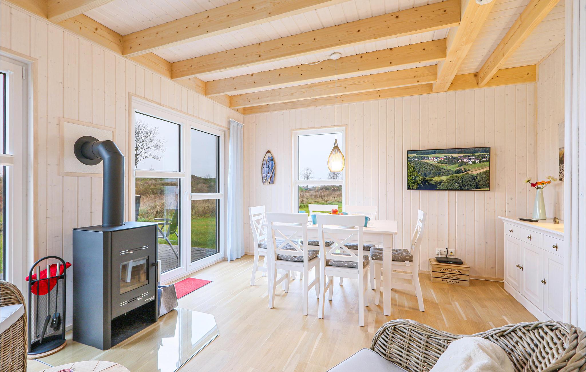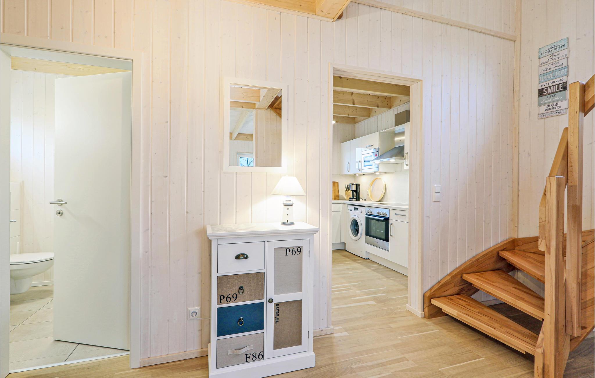 Das Ferienhaus mit Blick auf den Wasserlauf hinter dem Haus, bietet Platz für die ganze Familie und ist aufgrund der zwei Bäder - eines im Erdgeschoss und eines im Obergeschoss - auch perfekt für den Urlaub mit zwei gemeinsam verreisenden Paaren geeignet. Es gibt zwei separate Schlafzimmer, zwei Schlafplätze befinden sich auf dem Sofa im Wohnbereich. Im Badezimmer befindet sich die private Infrarot-Wärmekabine des Ferienhauses. Hier können Sie sich nach einem langen Spaziergang an der Ostsee wieder aufwärmen. Der Kaminofen im Wohnzimmer sorgt für eine wohlige Athmosphäre. Zudem steht Ihnen in diesem Ferienhaus Magenta-TV zur Verfügung.