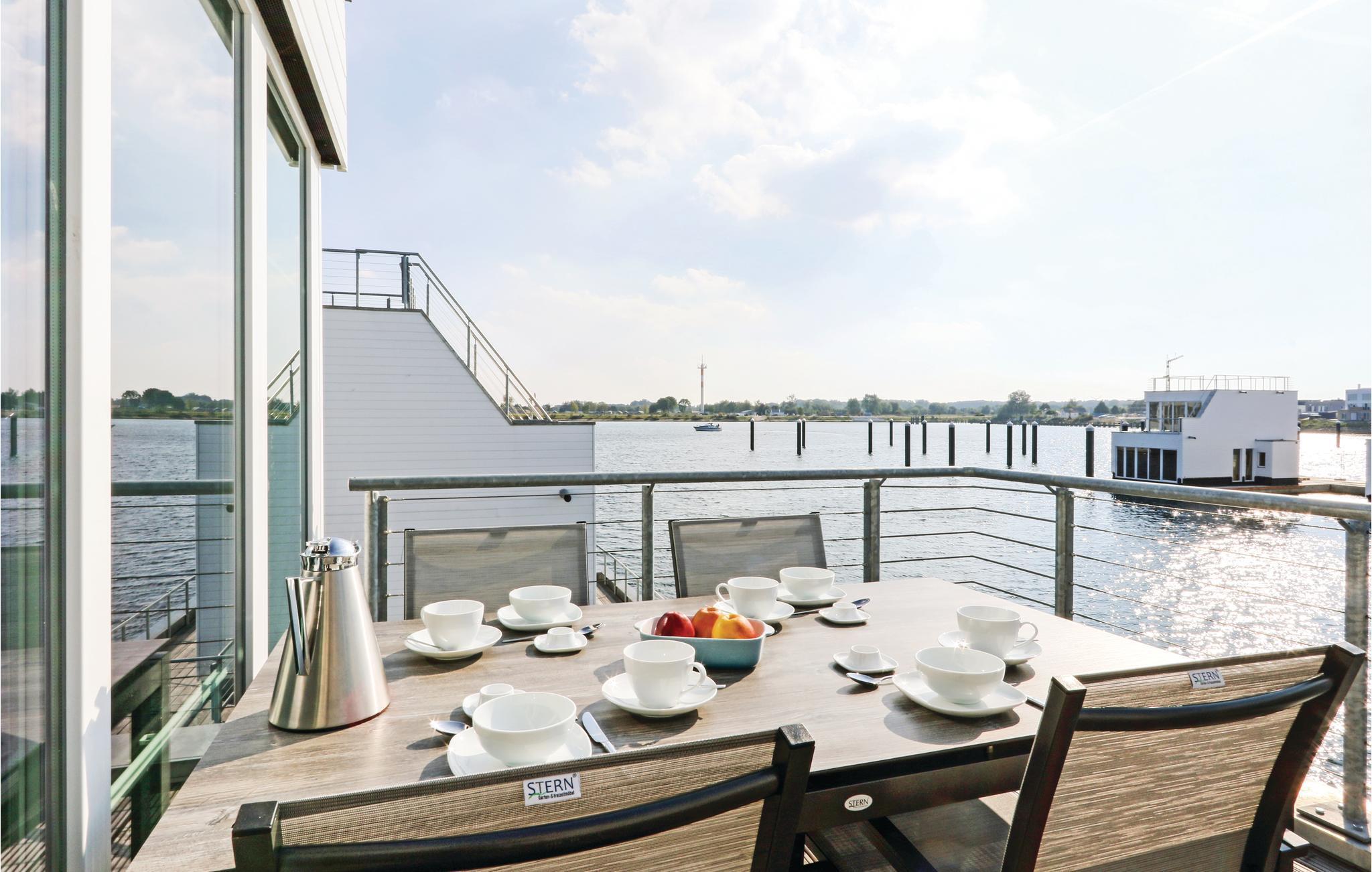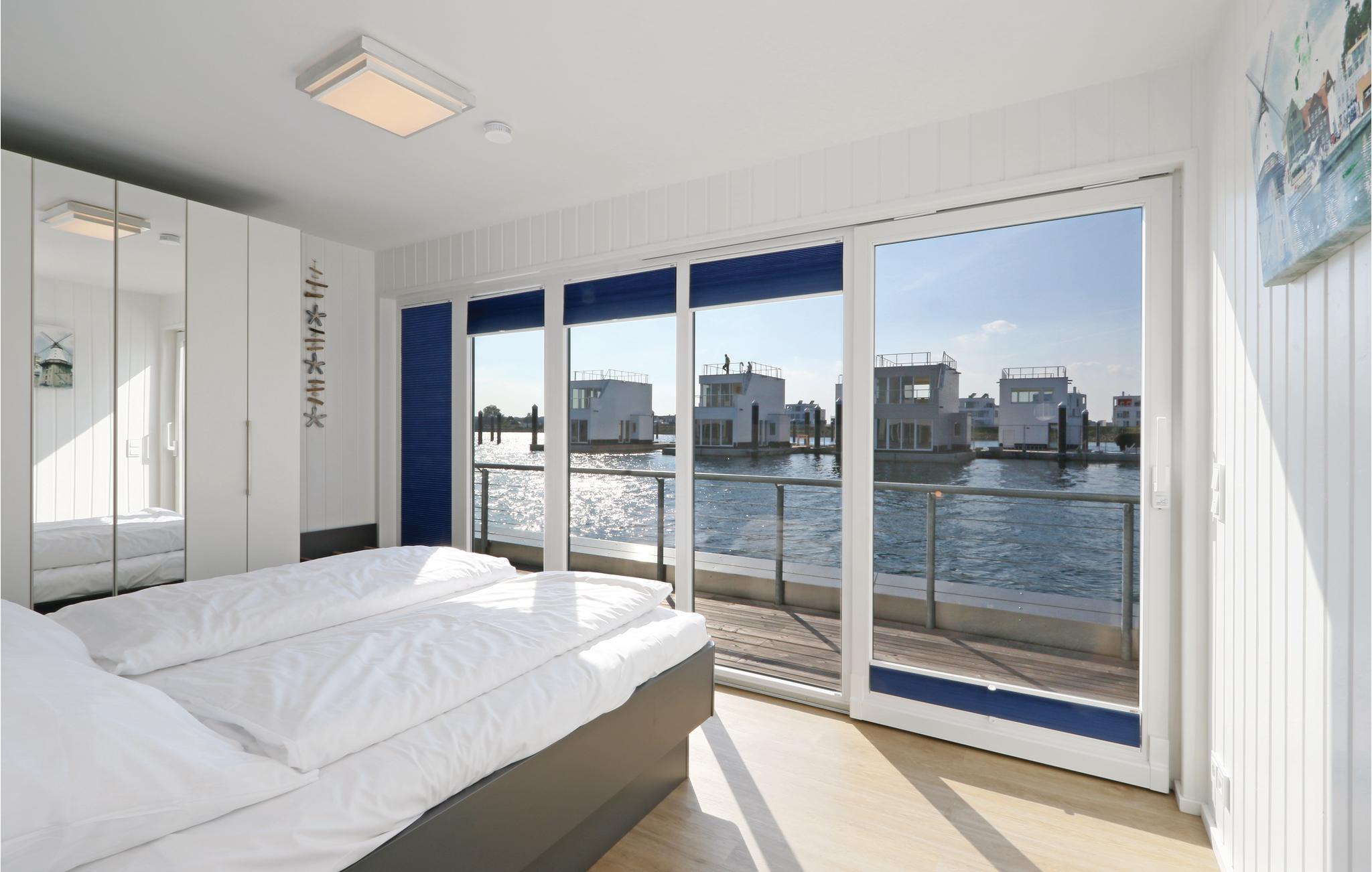 Genießen Sie maritimen Luxus im schwimmenden Ferienhaus "Captain Jack Sparrow" im OstseeResort Olpenitz mit Sauna und Panoramablick.