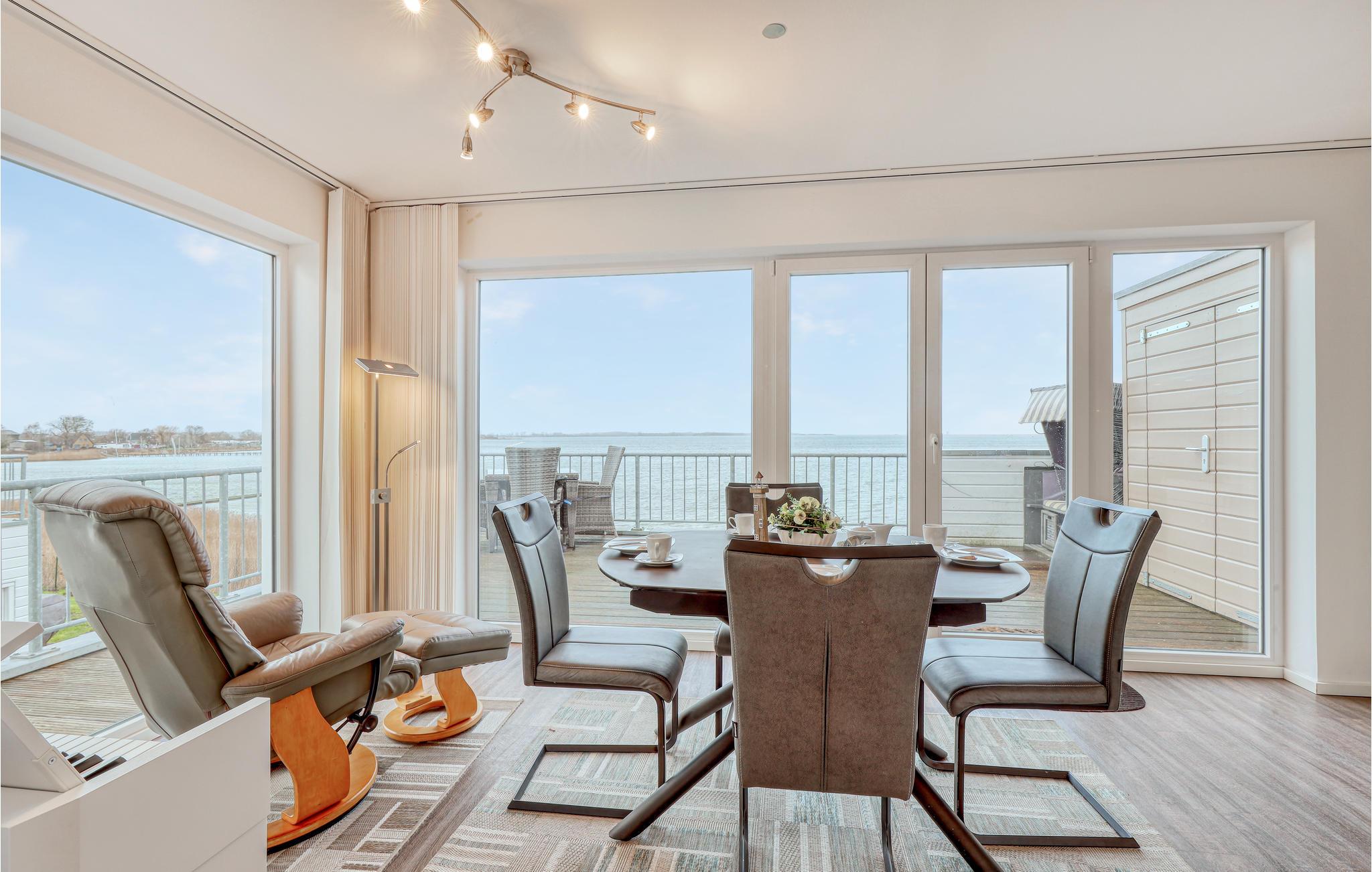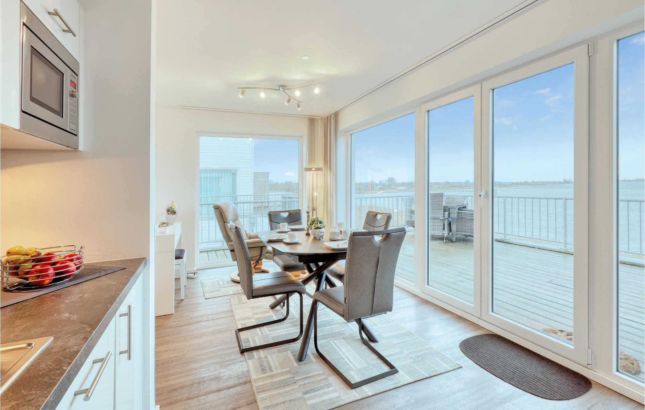 In erster Reihe am Ufer der Schlei und nur weniger Meter von der Ostsee entfernt, liegt diese exklusive Ferienwohnung im OstseeResort Olpenitz. Sie erstreckt sich über zwei Etagen (1.+ 2.OG). Hier, am westlichen Rand des OstseeResorts haben Sie einen fantastischen Panoramablick über die Wellen der beeindruckend breiten Schleimündung, auf der Sie die vorbeiziehenden Segelboote betrachten können. Ein atemberaubender und gleichzeitig unglaublich entspannender Blick, den Sie nicht nur vom Balkon aus genießen können, sondern auch aus dem mit Panoramafenstern versehenen Essbereich aus.