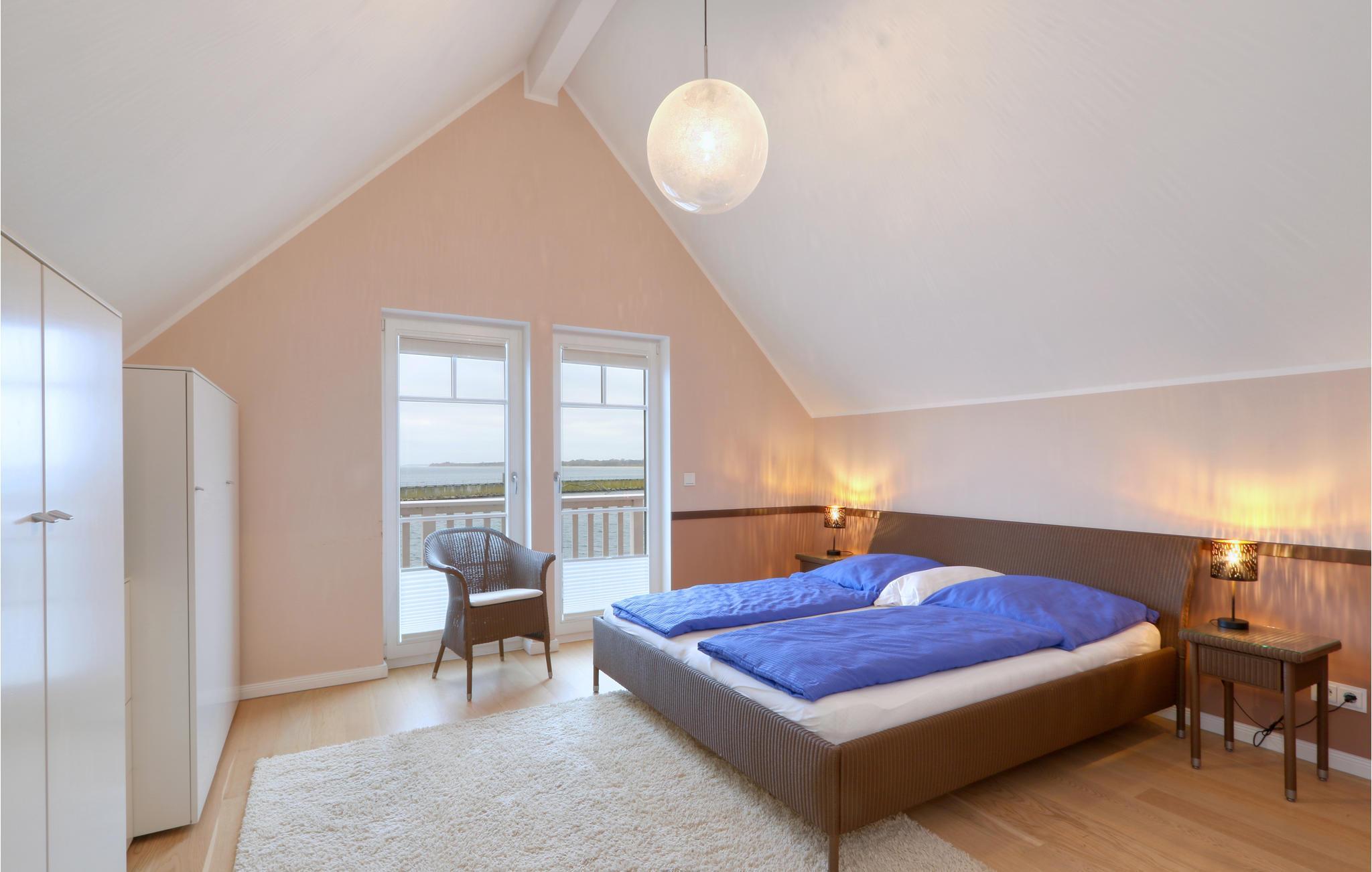 Damit Sie den einmaligen Panoramablick auf die Schleimündung, die Ostsee und den Sportboothafen auch richtig genießen können, ist die Doppelhaushälfte mit einer schönen Holzterrasse direkt am Wasser ausgestattet. Im Obergeschoss bieten sich vom Balkon aus nochmals faszinierende Perspektiven. Das Objekt ist gut für zwei Paare geeignet, denn jedes Schlafzimmer im Obergeschoss verfügt über ein eigenes Badezimmer.