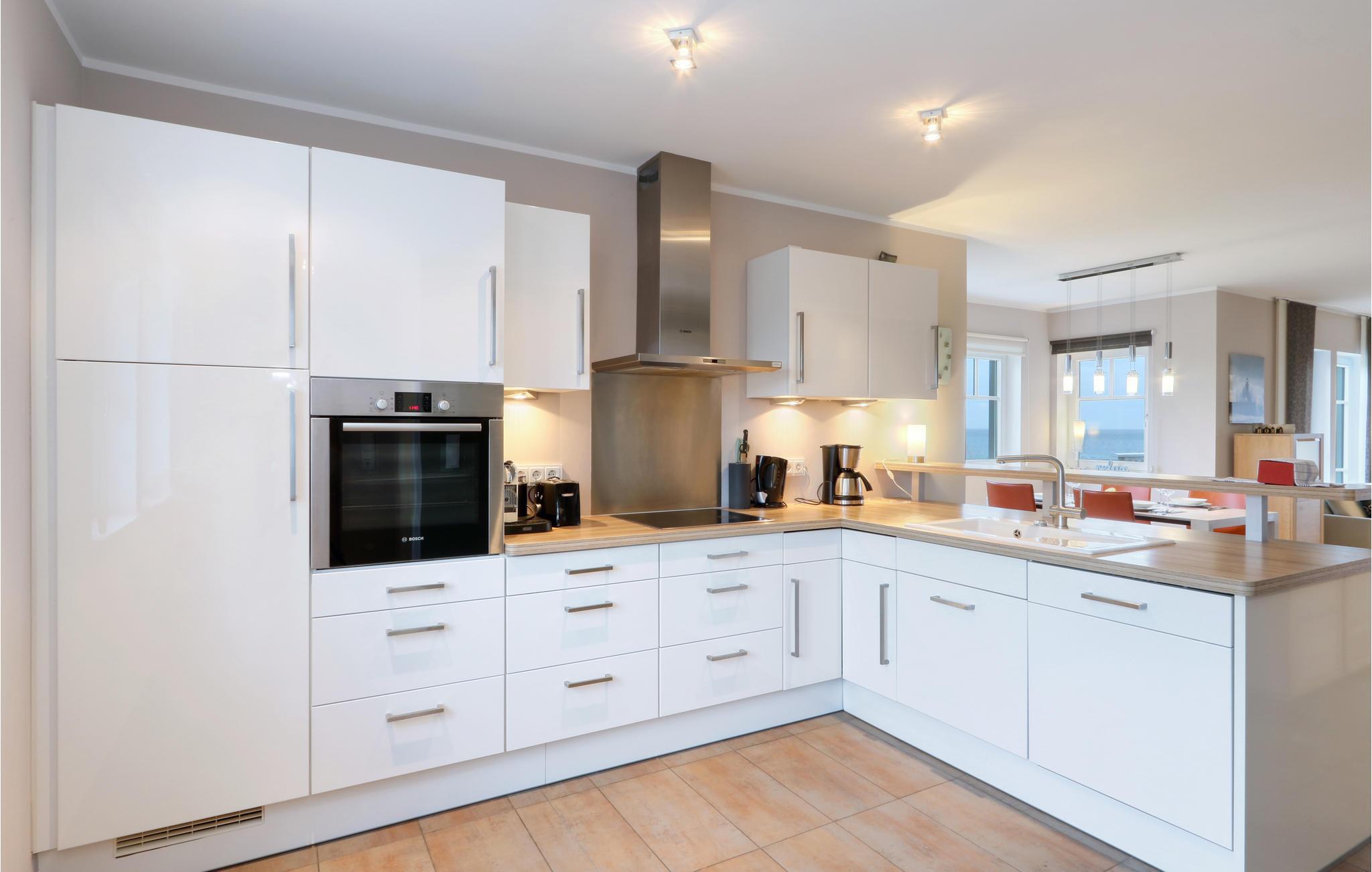 Die Landzunge, auf der das Haus steht, erstreckt sich weit in die Ostsee hinein. Nur wenige Ferienhäuser durften hier in dieser traumhaften Panoramalage im OstseeResort Olpenitz gebaut werden, so auch dieses Doppelhaus im Fachwerkstil. Die Einrichtung ist modern und gemütlich: Der Wohnraum mit luxuriöser großer Küche, gemütlichem Kaminofen und hochwertiger Sofalandschaft wurde bewusst offen gehalten, so dass Sonne und Licht das ganze Haus durchfluten können.