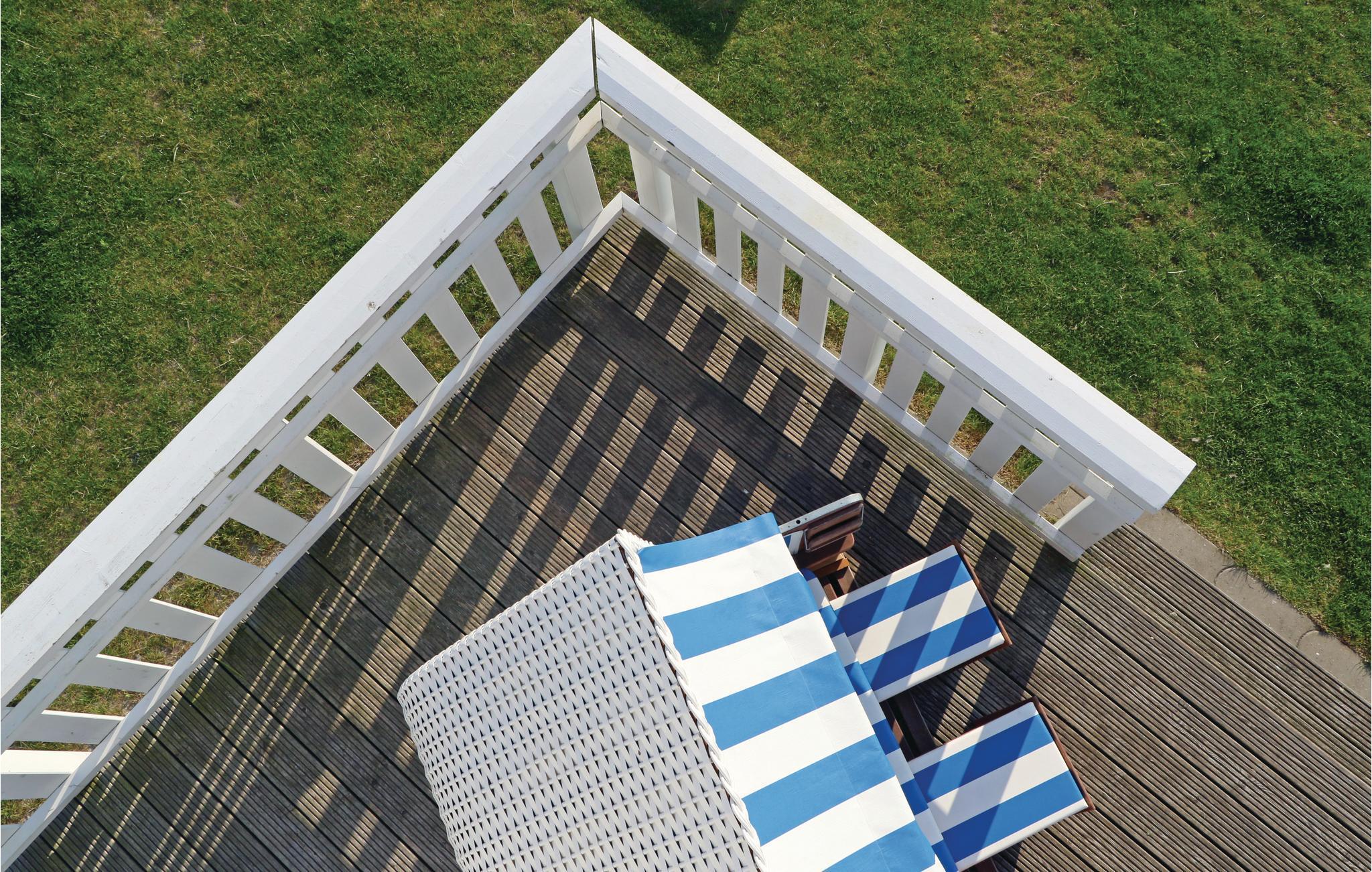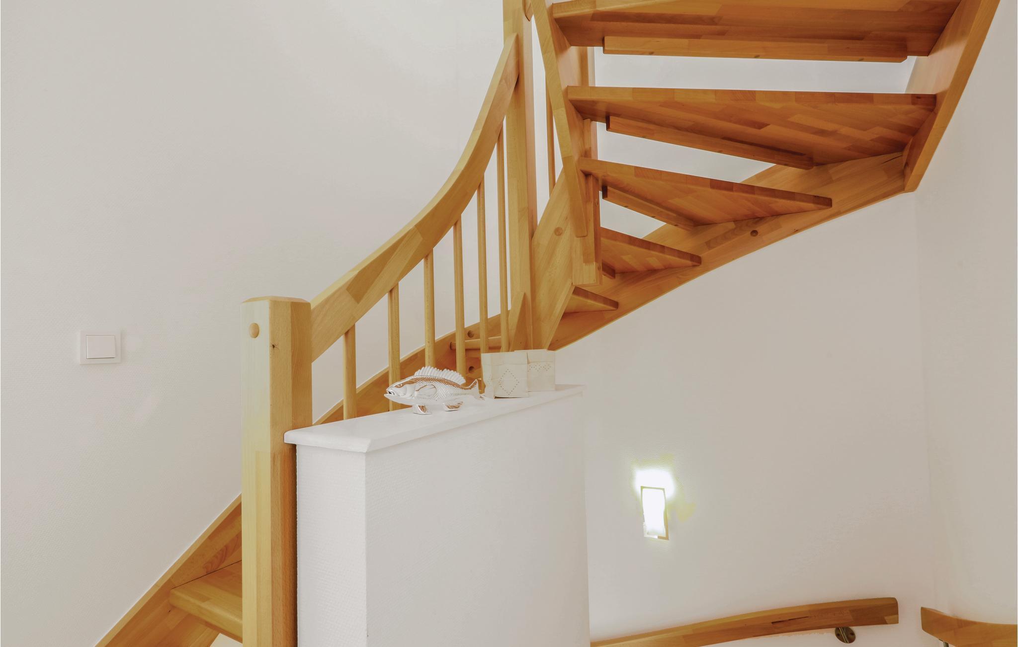 Das Haus ist hochwertig ausgestattet: unten befinden sich der kombinierte, offene Wohn- und Essbereich mit Parkettboden. Das Sofa kann auch als Schlafmöglichkeit genutzt werden. Im 1. Stock finden Sie neben den beiden Schlafzimmern auch das Badezimmer, in dem eine mit Massagedüsen versehene, große Eckbadewanne zu entspannten Stunden einlädt. Als besonderes Highlight erwartet Sie eine eigene Sauna (mit Fenster) im obersten Stockwerk! Gibt es etwas Schöneres, als nach einem langen Tag am Meer die müden Muskeln in der Sauna aufzulockern und dabei den Blick über das Wasser schweifen zu lassen? Für Ihren Komfort gibt es direkt neben der Sauna übrigens eine separate Dusche. Neben den hochwertigen Gartenmöbeln steht Ihnen hier auch ein Original-Strandkorb zur Verfügung, der das maritime Ostsee-Urlaubsflair vervollständigt.