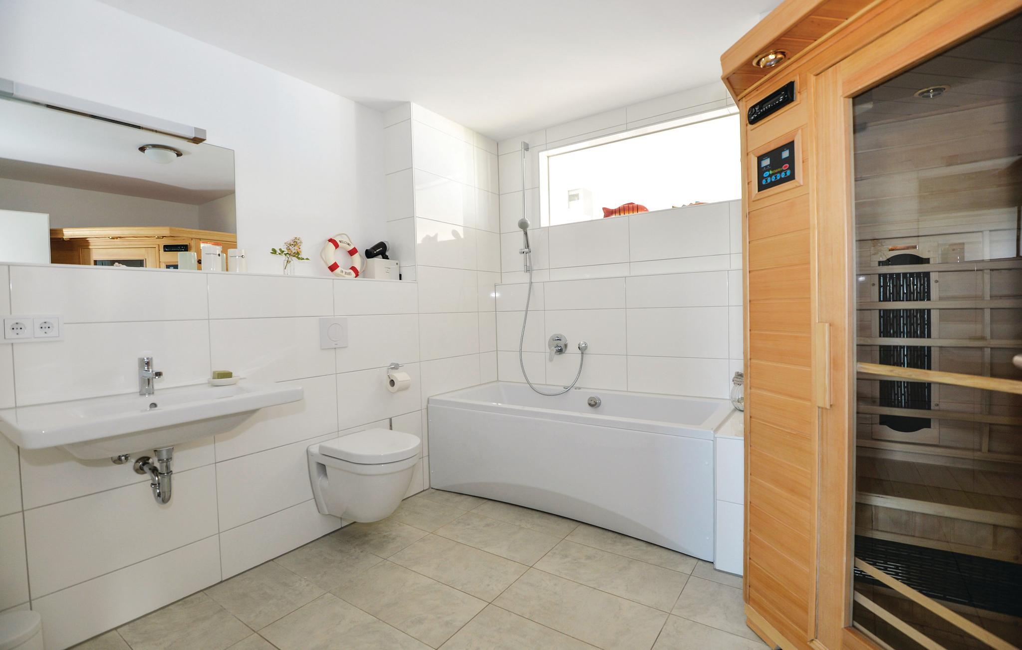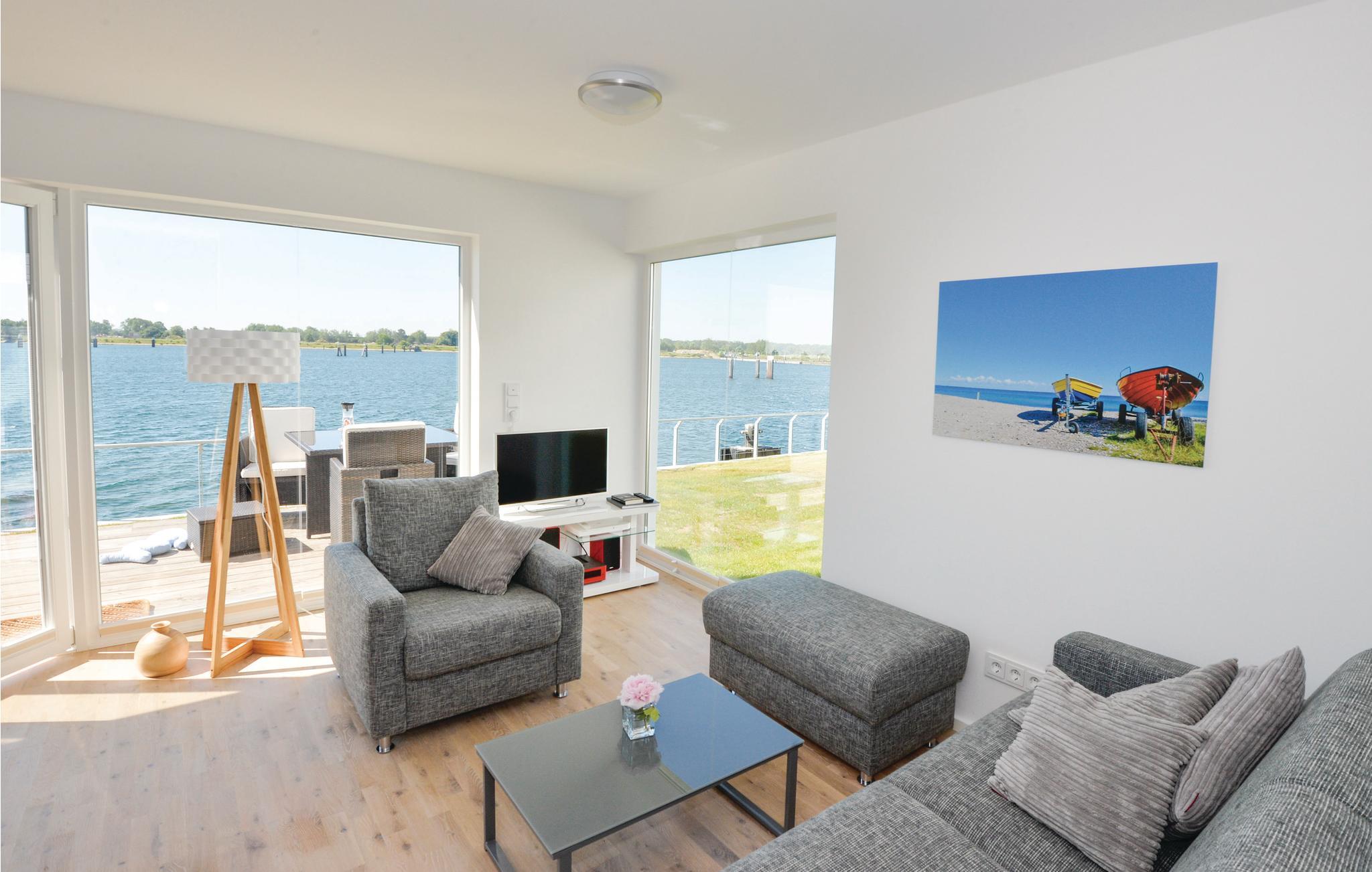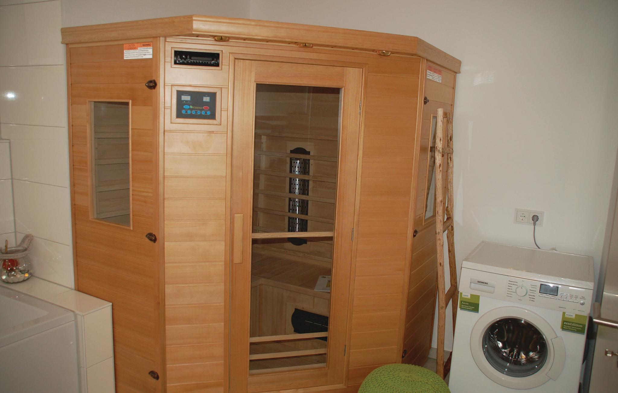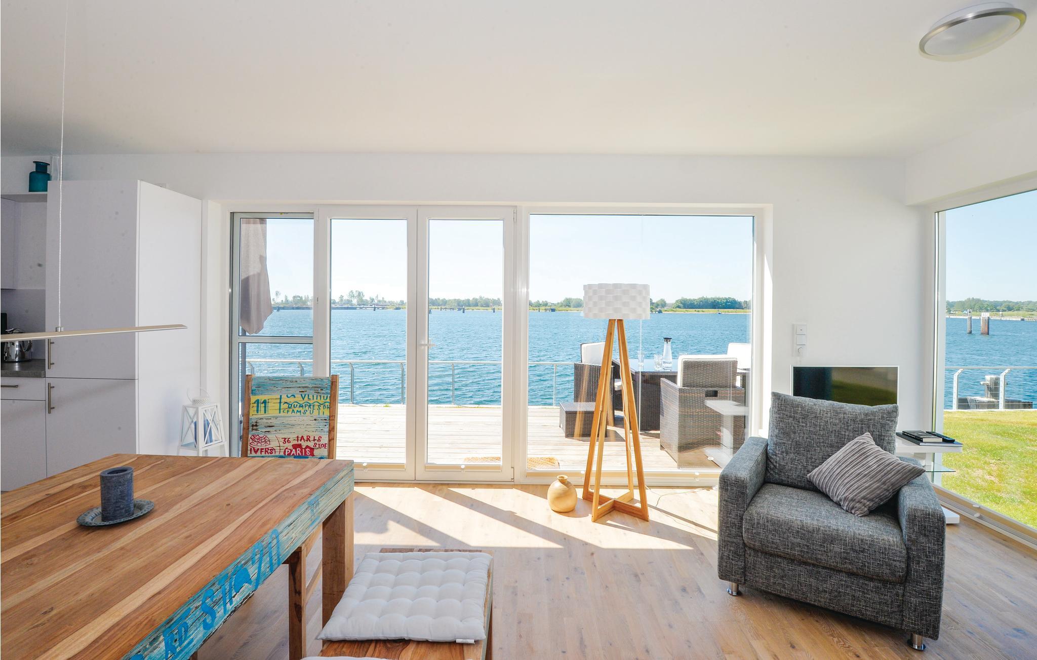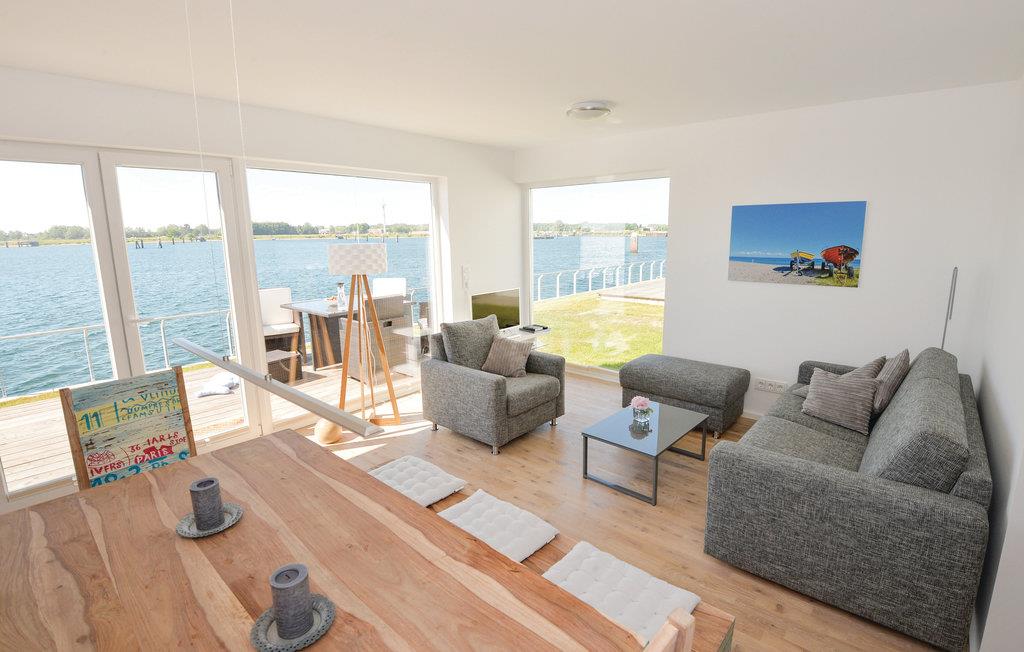 Die Ferienwohnung ist liebevoll ausgestattet: die urigen und doch modernen Tische im Treibholzdesign vermitteln ein besonderes maritimes Flair, die Dekoration ist sorgfältig ausgesucht und ganz auf die vom Wasser geprägte Landschaft abgestimmt. Auf der gemütlichen Sofaecke lässt es sich herrlich relaxen. Dank der bodentiefen Fenster fällt auch vom hellen Wohn- und Essbereich aus der Blick auf die Marina. Als besonderes Highlight erwartet Sie Entspannung pur in Ihrer privaten Infrarot-Wärmekabine und natürlich der schönen Badewanne. Gibt es etwas Schöneres, als nach einem langen Tag am Meer die müden Muskeln in der wohligen Wärme aufzulockern?