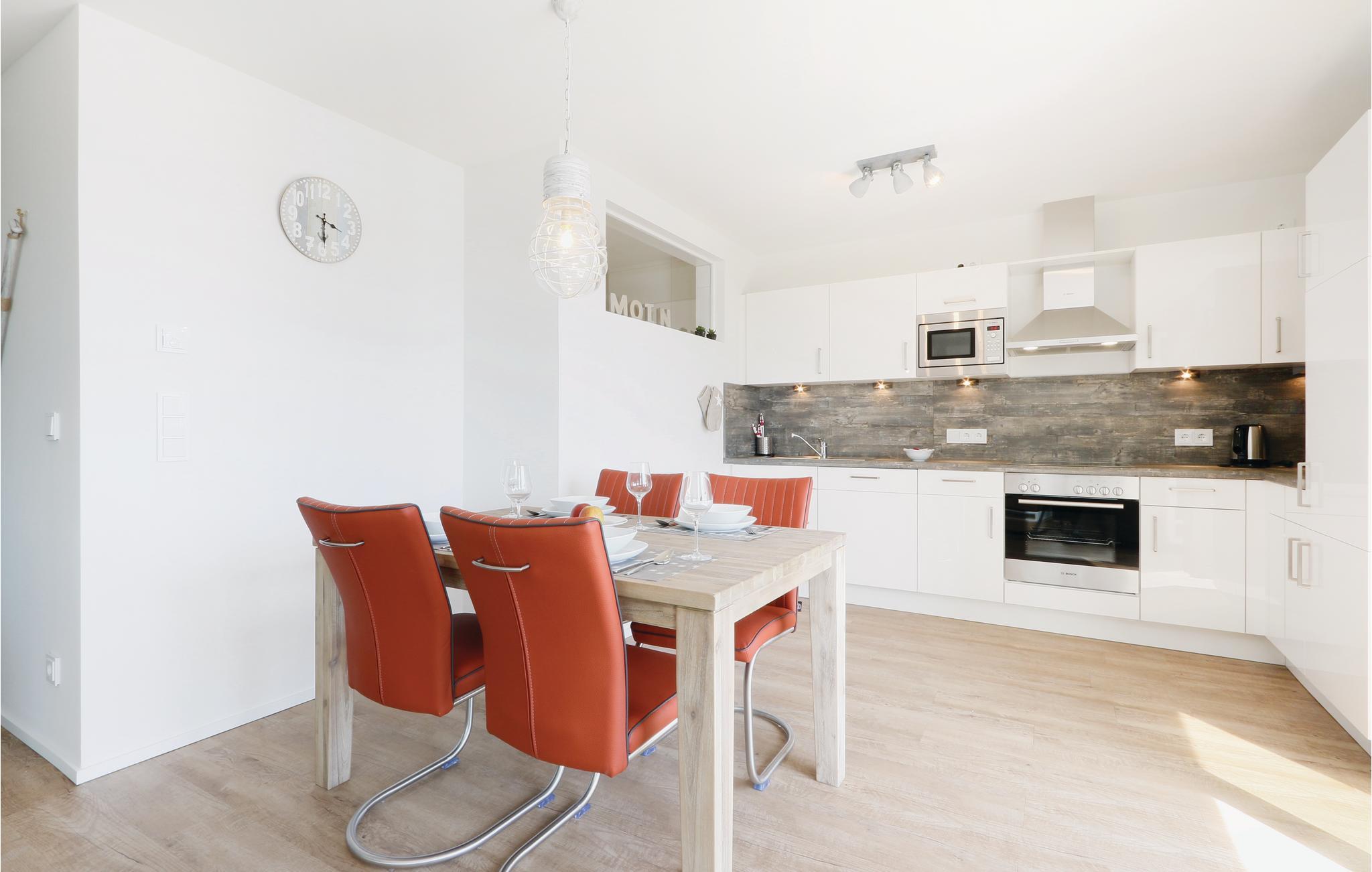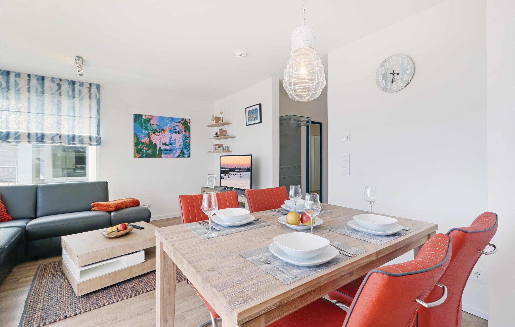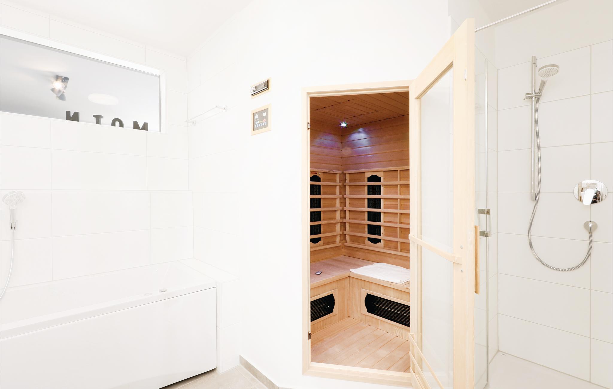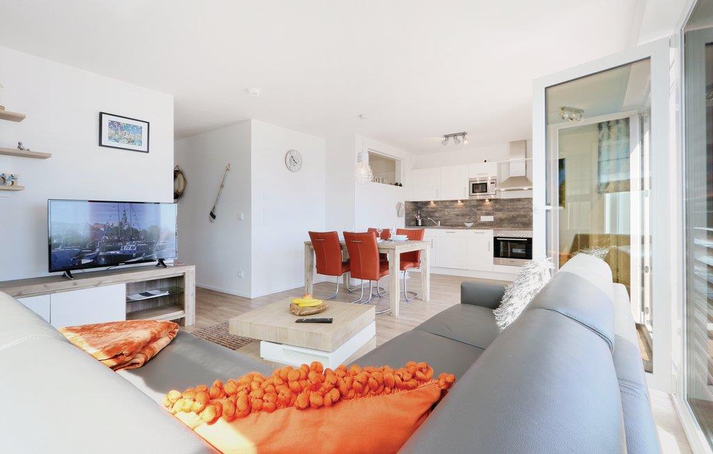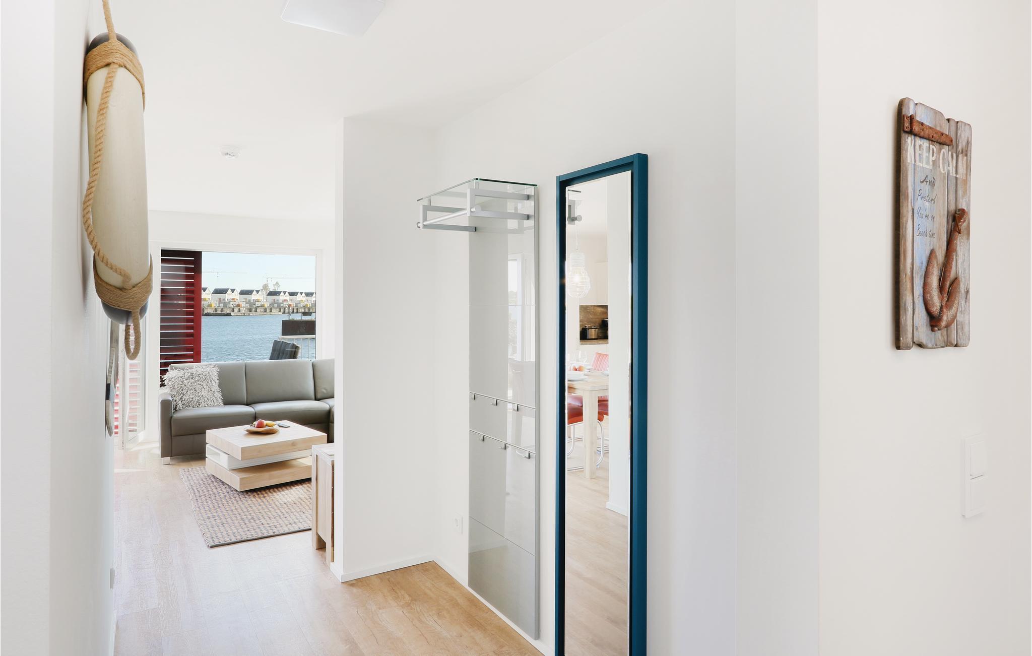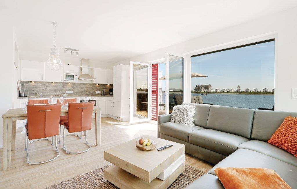Aufgrund der Panoramafenster müssen Sie auch vom gemütlichen, hellen Wohnbereich aus nicht auf den Blick über die Wellen und Boote im Hafen verzichten. Im Badezimmer finden Sie Ihre private Wellness-Oase mit Infrarotsauna und Whirlpool. Hier können Sie nach einem stürmischen Tag an der See herrlich entspannen. Die beiden Schlafzimmer sind mit jeweils einem gemütlichen Doppelbett ausgestattet.