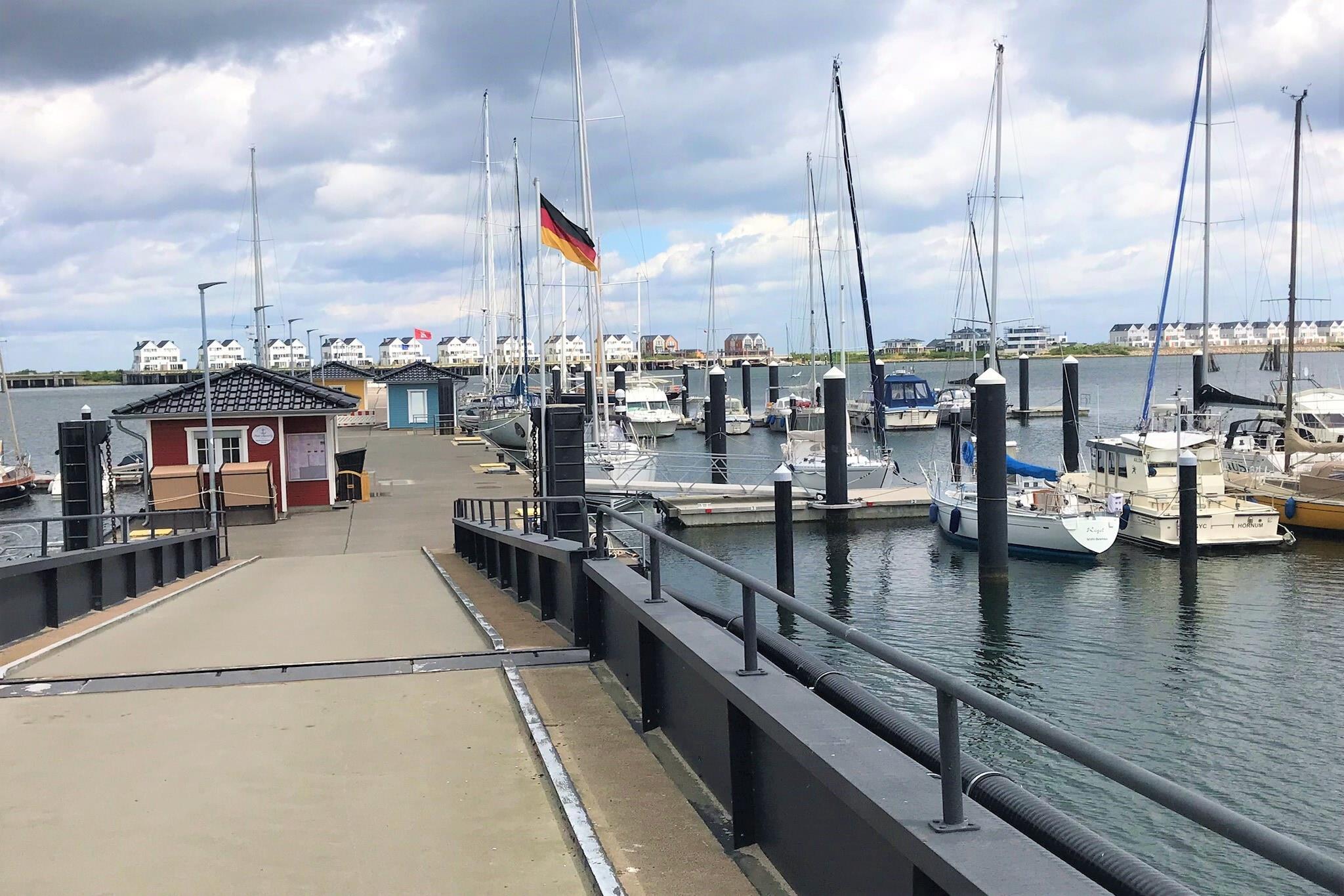 Moderne Ferienwohnung im Ostseeresort Olpenitz mit zwei Balkonen, Kaminofen, Wellnessbad und Blick auf die Marina.