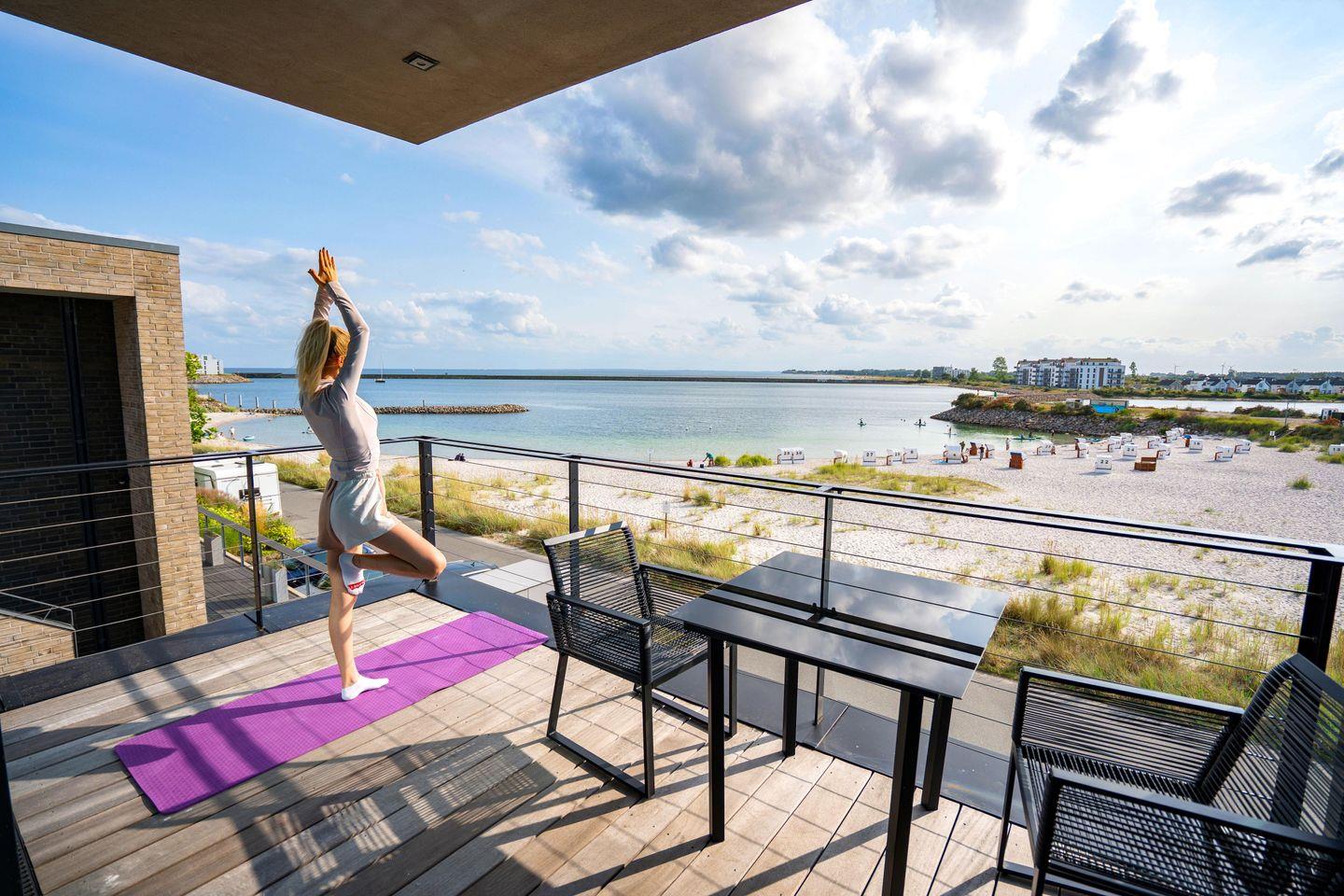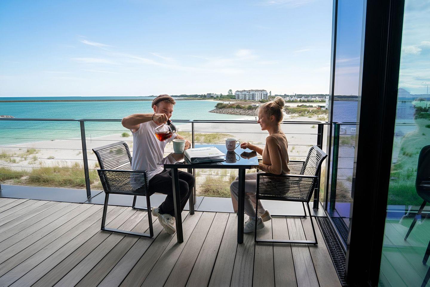 Stilvolles Designapartment Gooso mit großem Sonnenbalkon und traumhaftem Meerblick direkt am Ostseestrand.