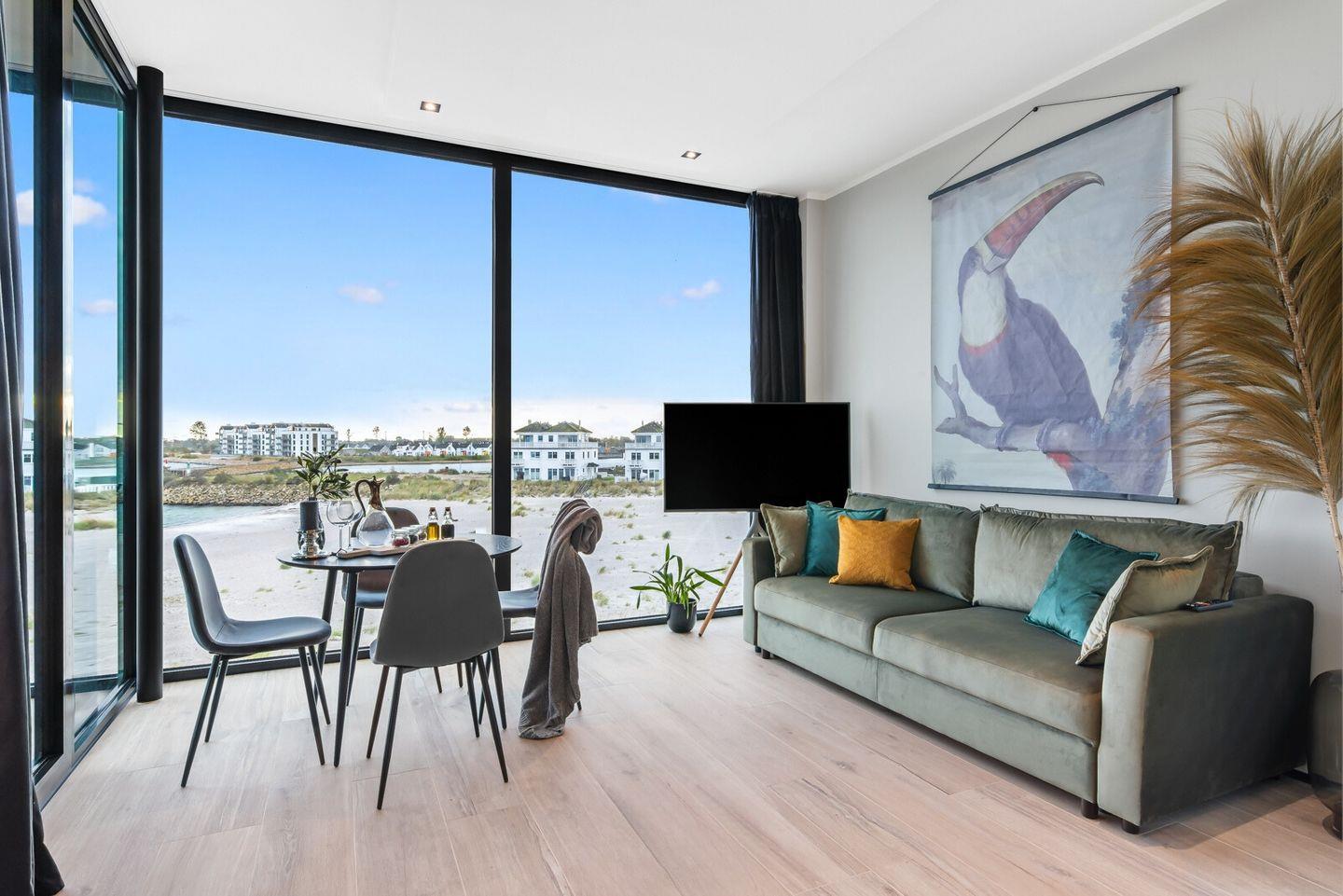 Genießen Sie einen besonderen Aufenthalt im Designapartment Gooso. Hier treffen moderner Luxus und Strandflair aufeinander.