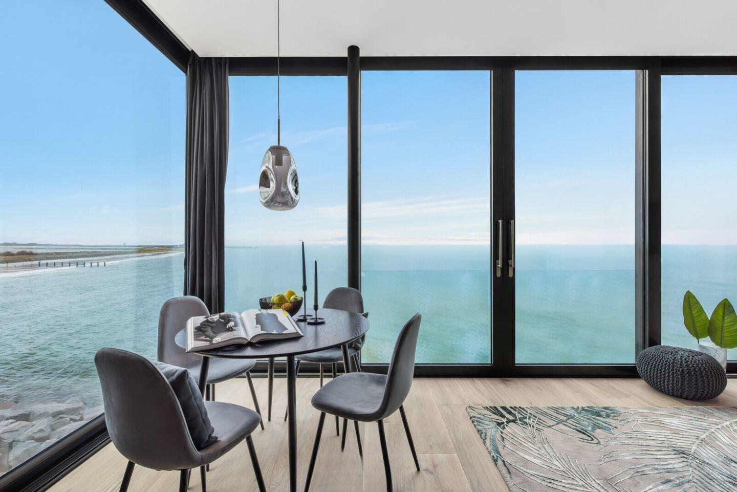 Der großzügige, lichtdurchflutete Wohn-Essbereich ist mit einer großen Schiebetür ausgestattet, die den Raum nahtlos zur zum Strandhaus mit Terrassenfeeling werden lässt. Die moderne Einbauküche mit Markengeräten gewährt Ihnen auch beim Kochen einen inspirierenden Meerblick.