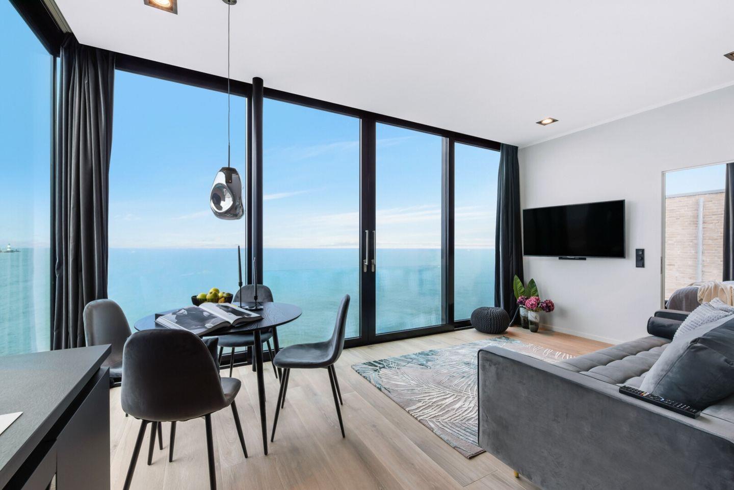 Auf einer Fläche von ca. 38 m² im 1. Obergeschoss bietet das Apartment ein unvergessliches Urlaubserlebnis. Durch riesige Panoramafensterfronten genießen Sie einen atemberaubenden Blick über die freie Ostsee bis nach Schleimünde und Dänemark. Mehr Meerblick geht nicht!