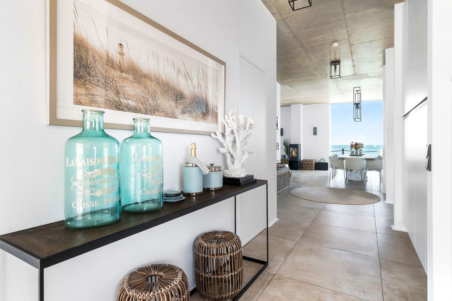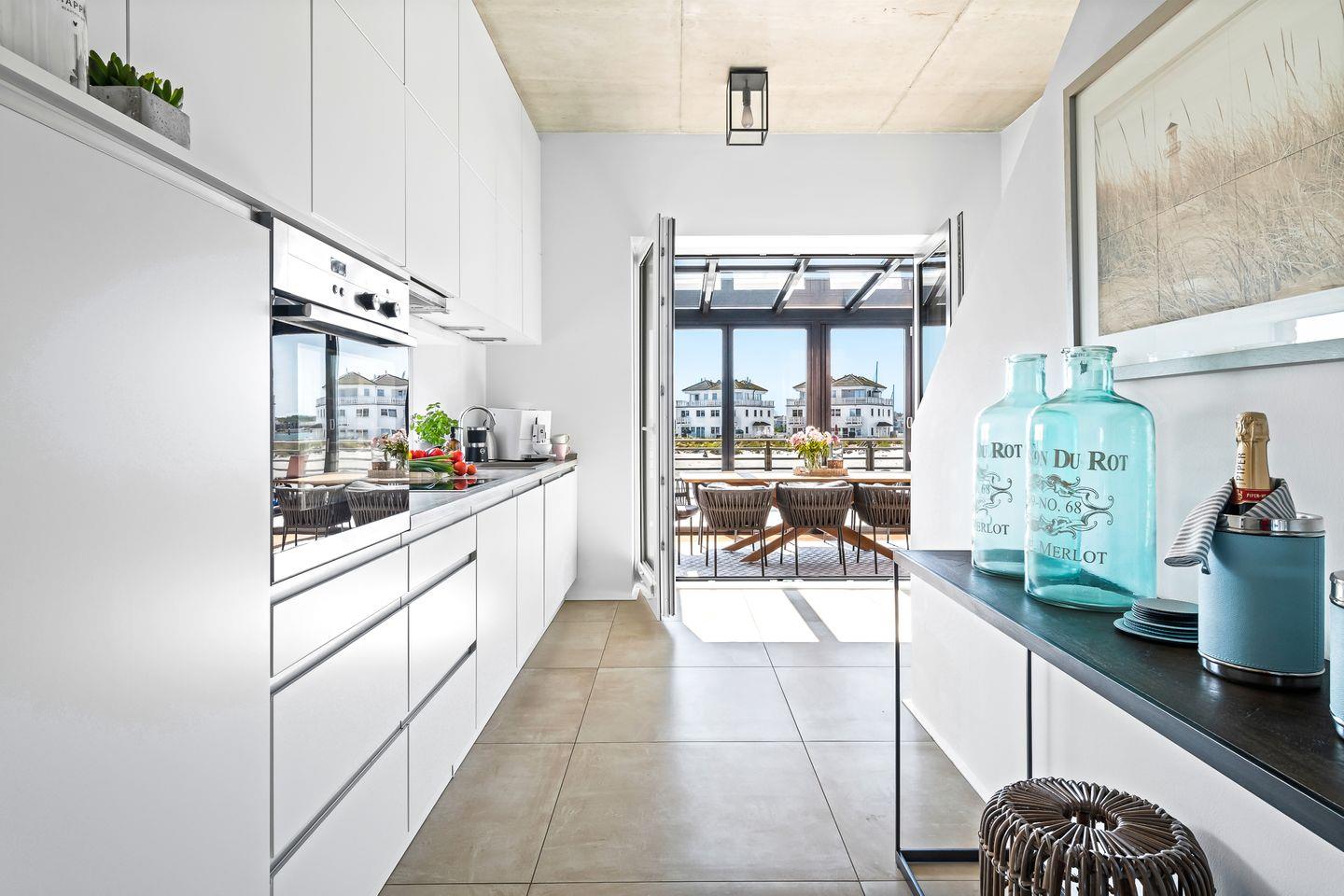 Die großzügige, offene Küche mit Strandblick lädt zum gemeinsamen Kochen ein. Im Wohn-Essbereich genießen Sie im Winter das knisternde Kaminfeuer mit Ostseeblick. Im Sommer öffnen Sie Schiebetüren für eine sanfte Brise. Der strandseitige, beheizbare Wintergarten mit Panoramablick verwandelt jede Jahreszeit in ein Erholungsnaturerlebnis.